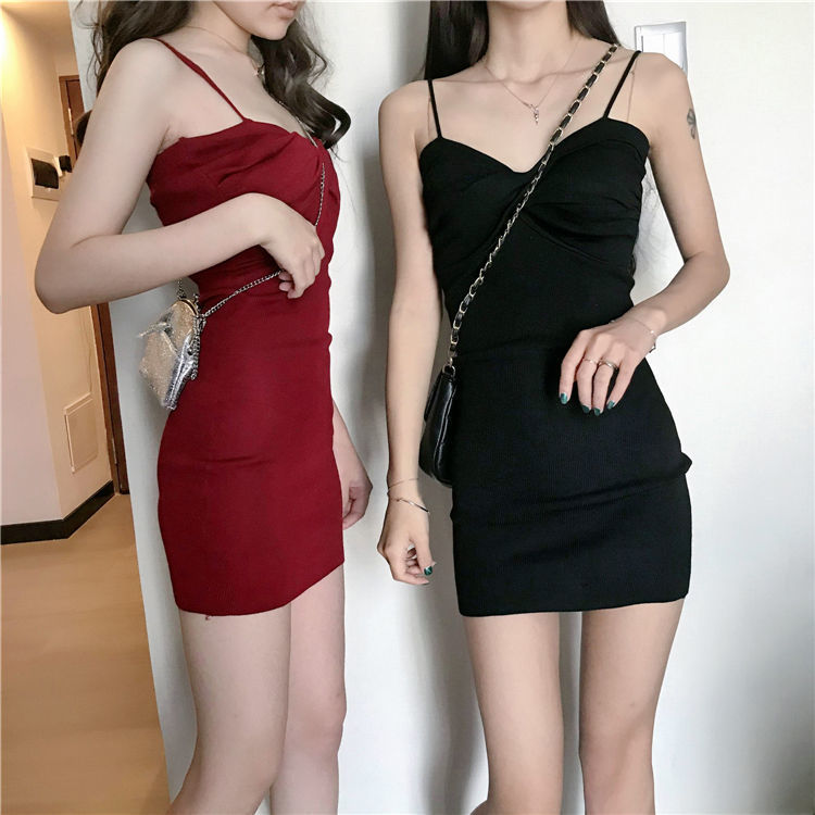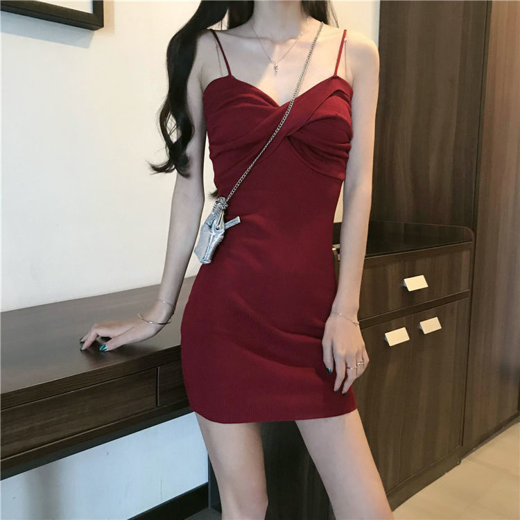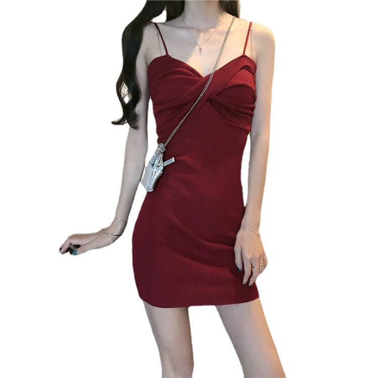 红色吊带裙连衣裙女修身赫本风包臀短裙小个子纯欲性感外穿裙子秋