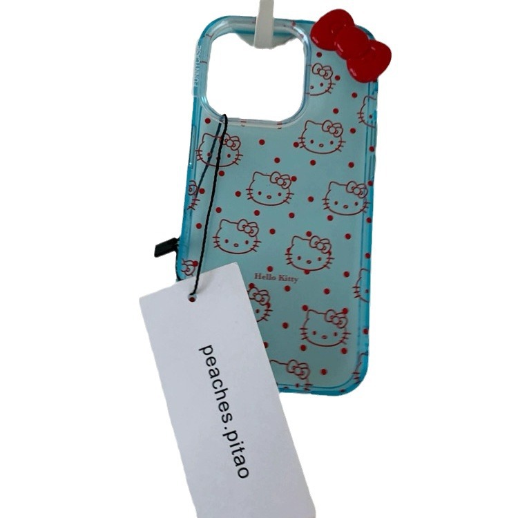 ins波点透蓝kt猫蝴蝶结适用苹果15手机壳iPhone14/13promax新款12