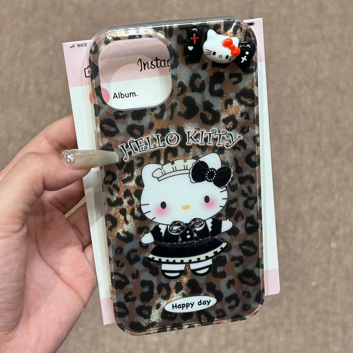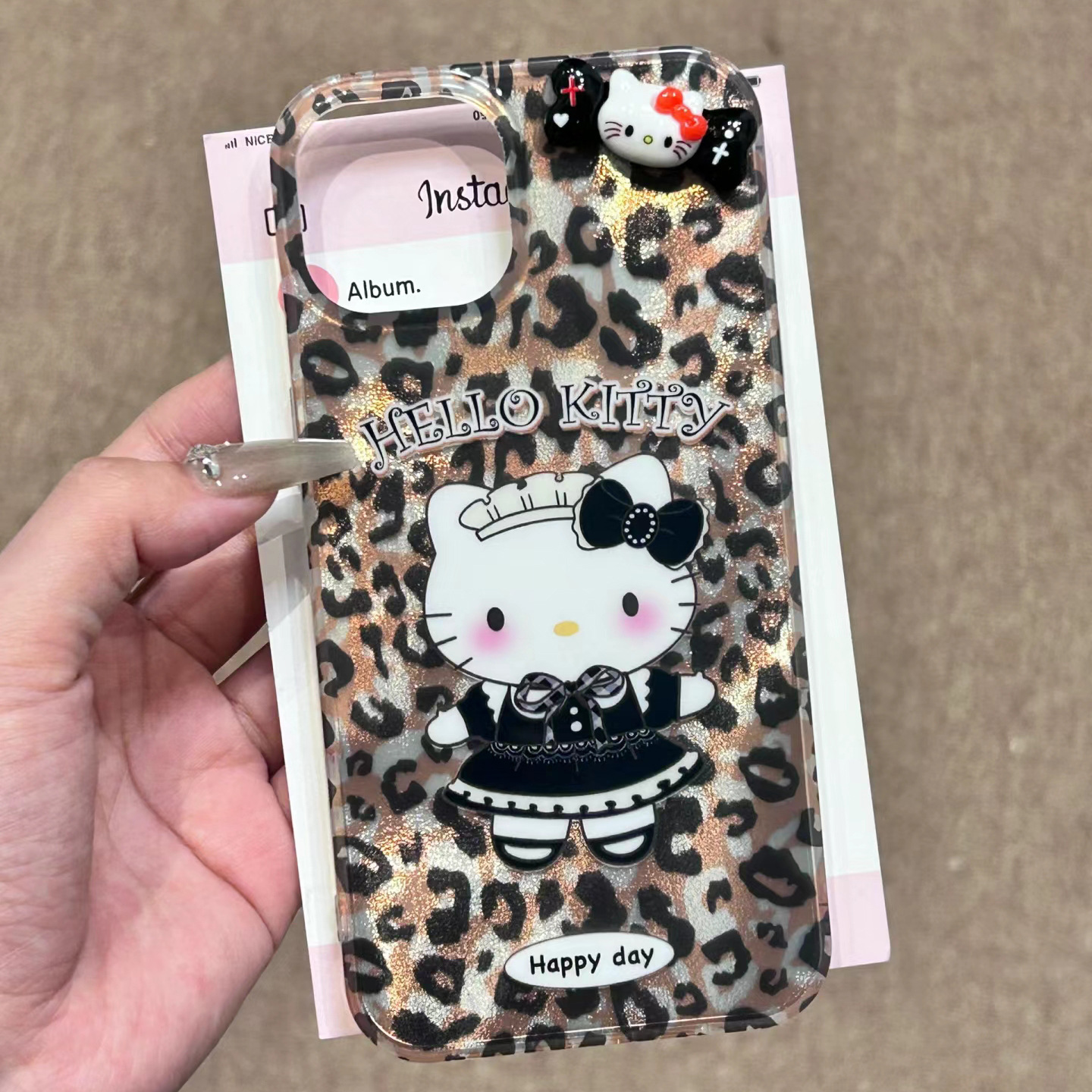 双层豹纹猫咪女仆苹果15手机壳iPhone14promax软13/12女11潮14pro