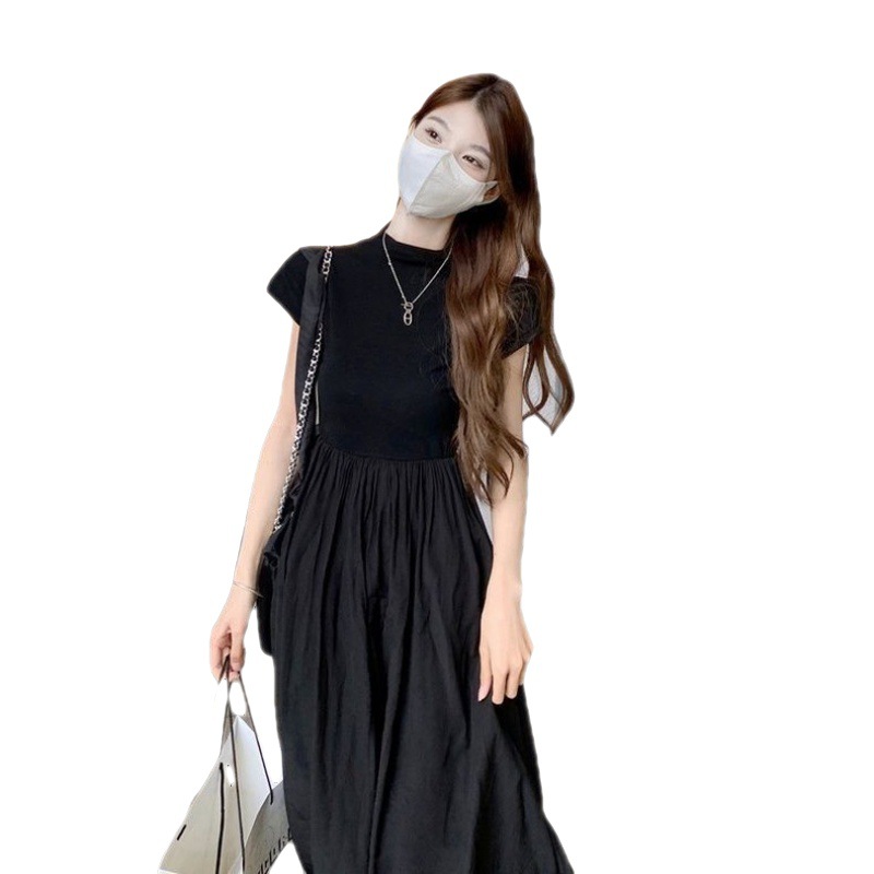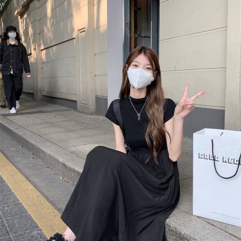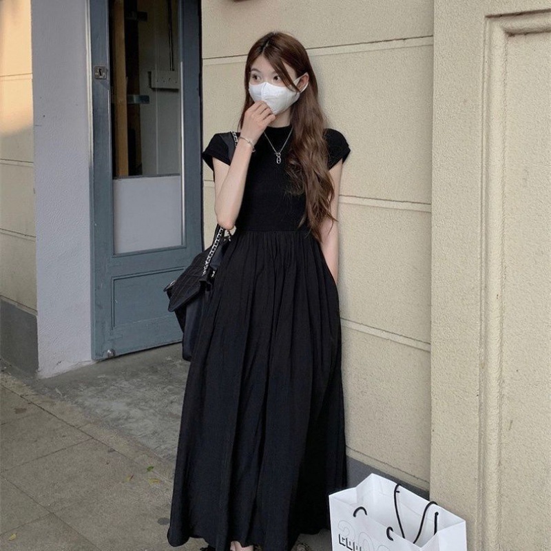 高级感气质赫本风黑色短袖连衣裙子女夏季新款小个子显瘦法式长裙
