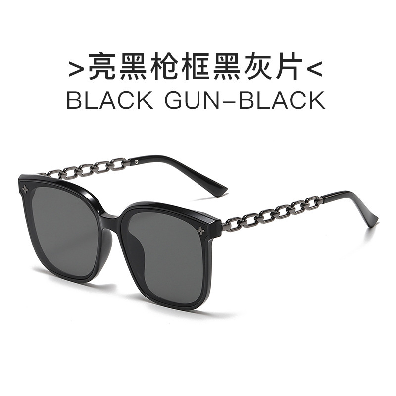 新款大框墨镜女高级感防紫外线太阳镜设计感链条镜腿时尚潮墨镜男