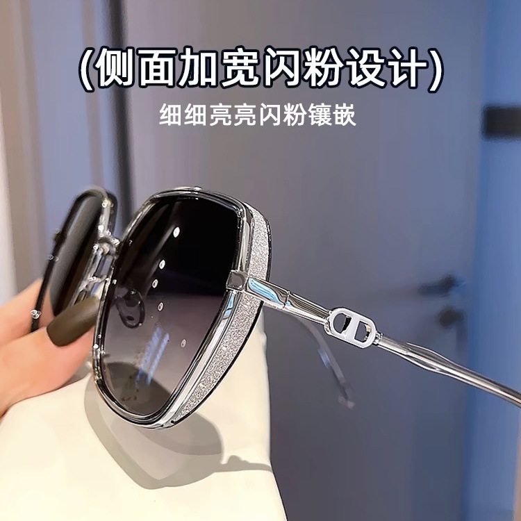 网红高级感侧边闪粉墨镜女轻奢时尚偏光太阳镜防紫外线太阳眼镜潮