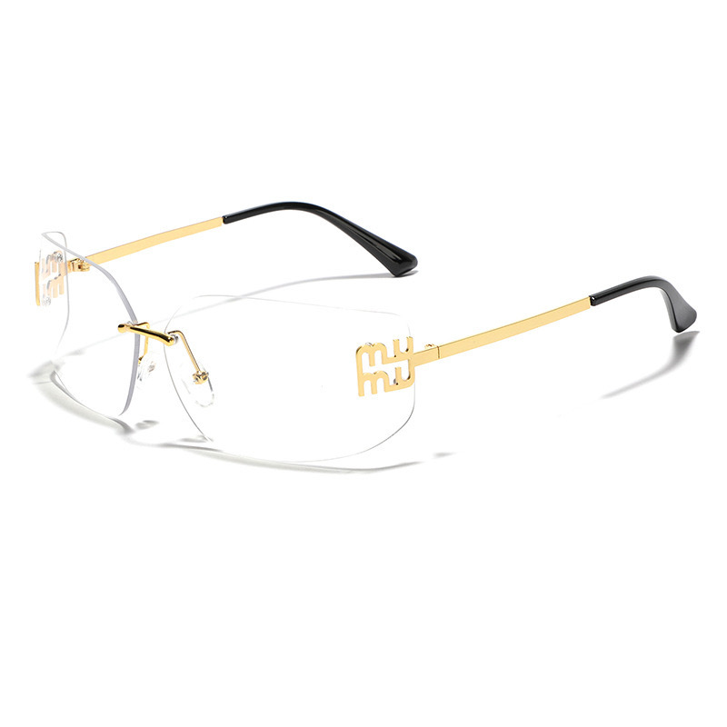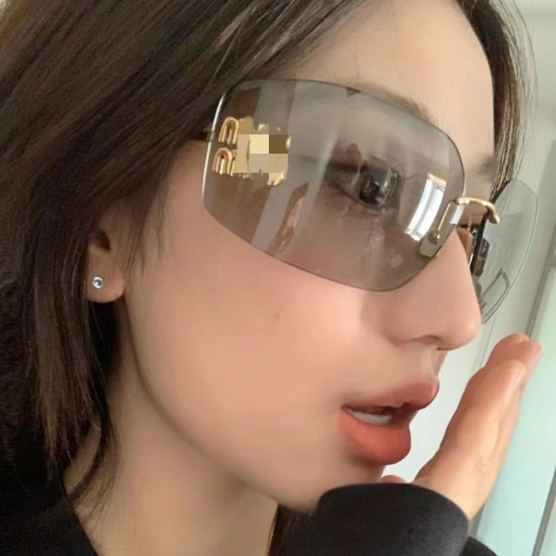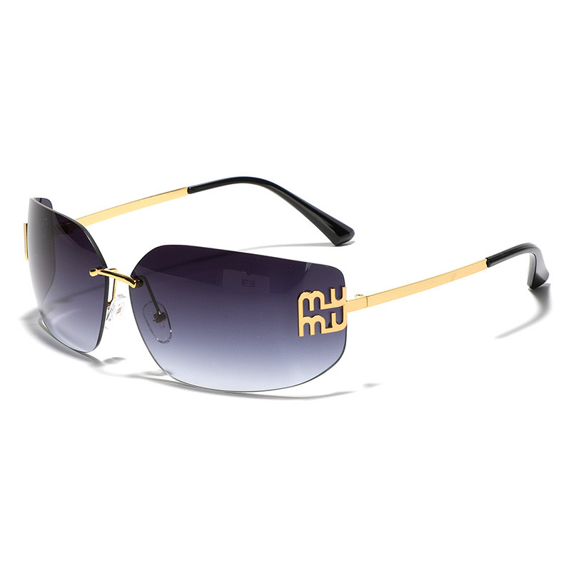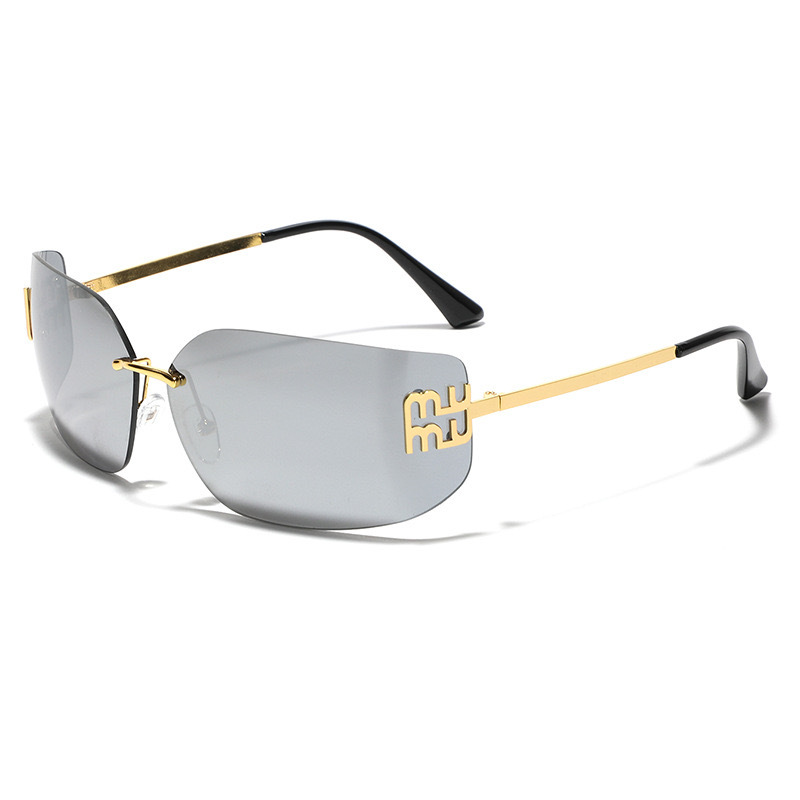 网红Y2K墨镜高级感曲面镜片无框太阳镜女个性防晒墨镜
