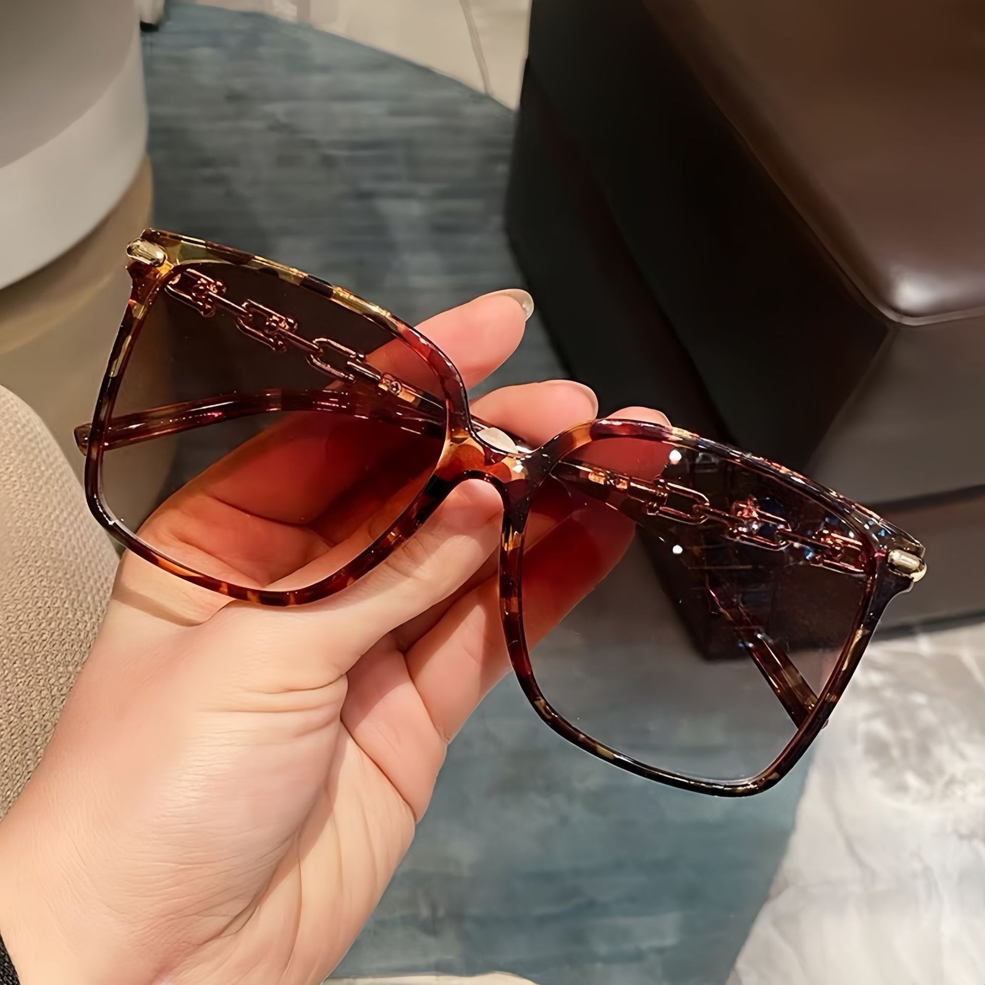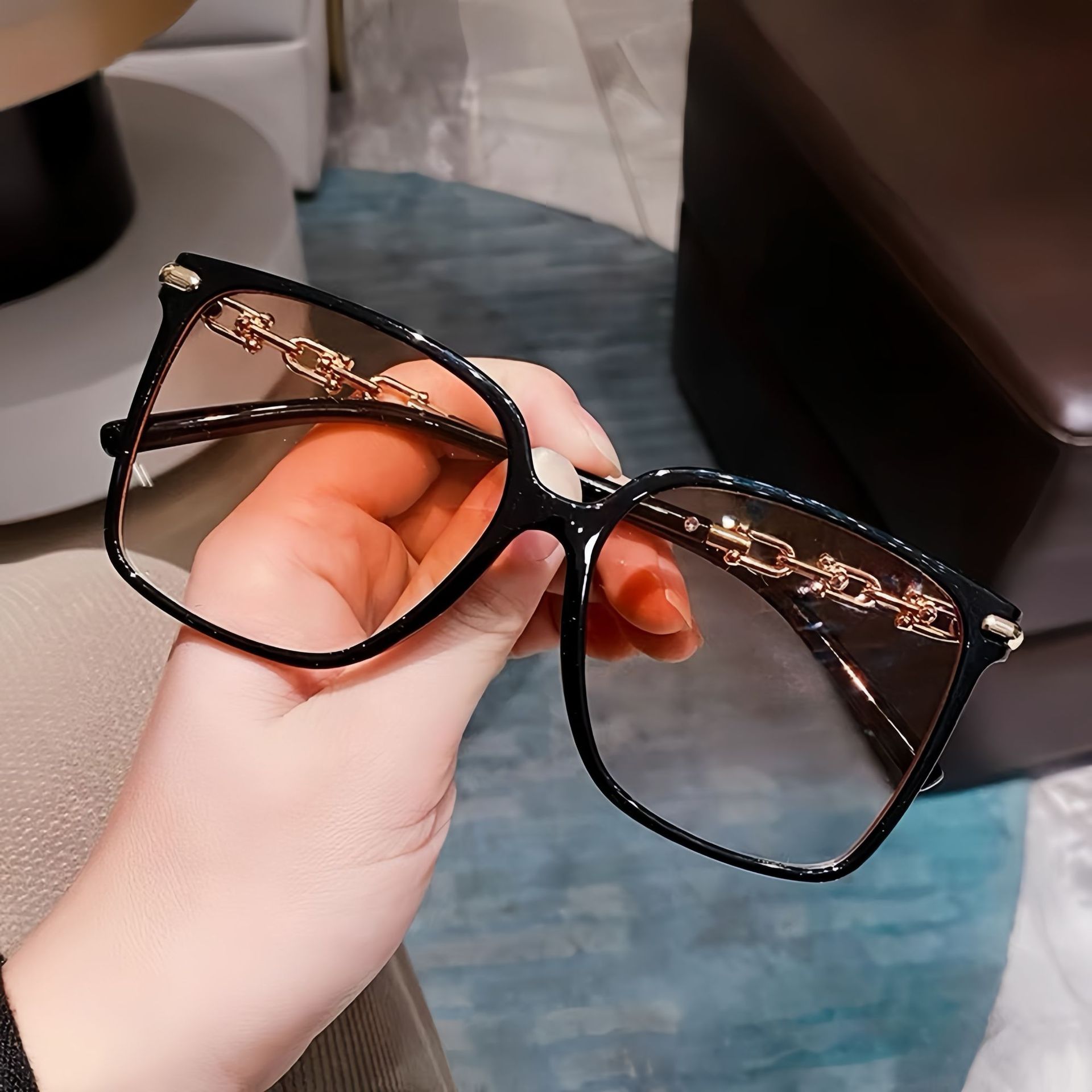 网红高级感大框墨镜女轻奢风链条镜腿出游防晒墨镜时尚穿搭太阳镜