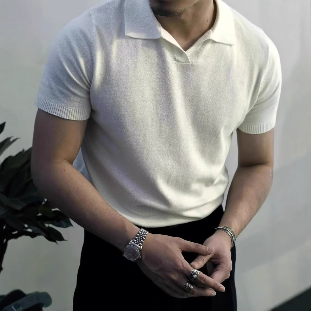 翻领商务polo男针织衫海鸥领t恤男休闲纯色修身美式男士夏季短袖