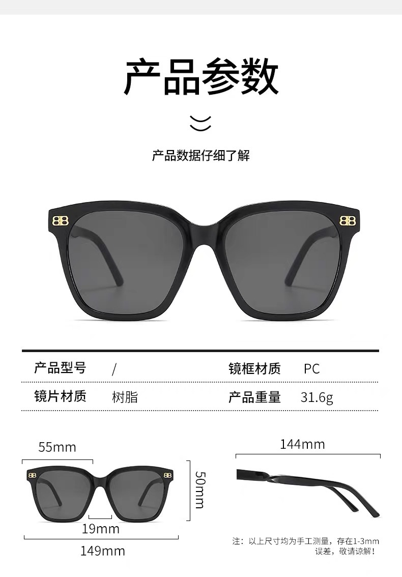新款轻奢黑框墨镜女高级感ins风防晒墨镜男潮出游防紫外线太阳镜