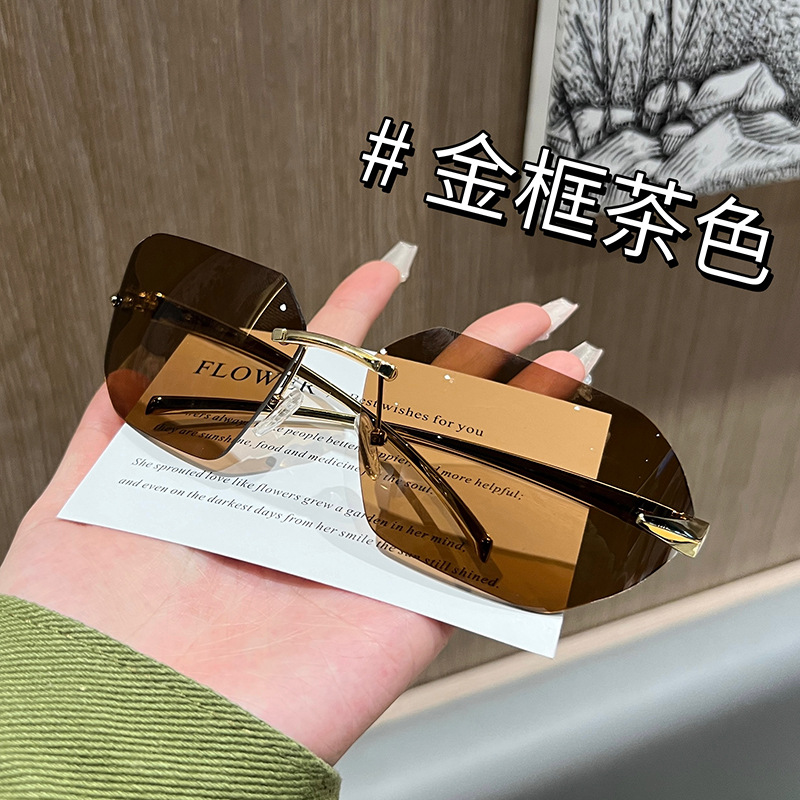 新款欧美Y2K甜酷风无框太阳镜女时尚个性防紫外线墨镜男朋克墨镜