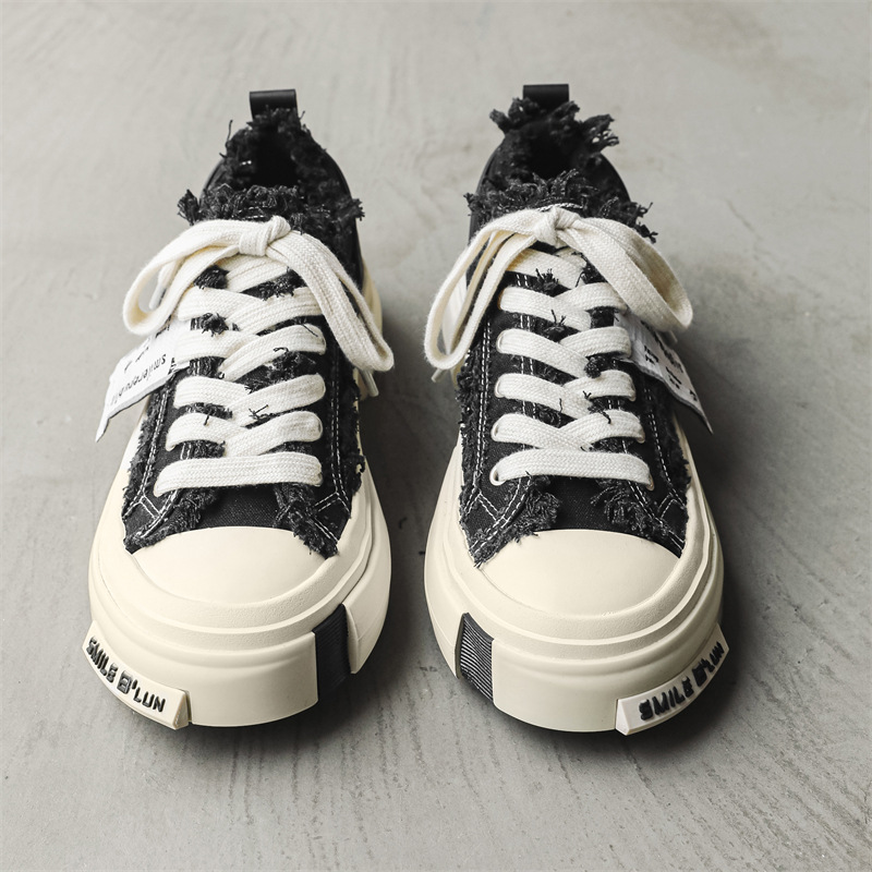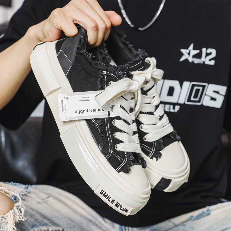 帆布鞋男夏季厚底防滑圆头透气小众设计板鞋学生百搭休闲运动潮鞋