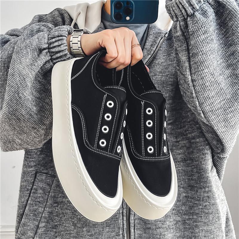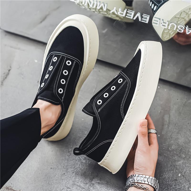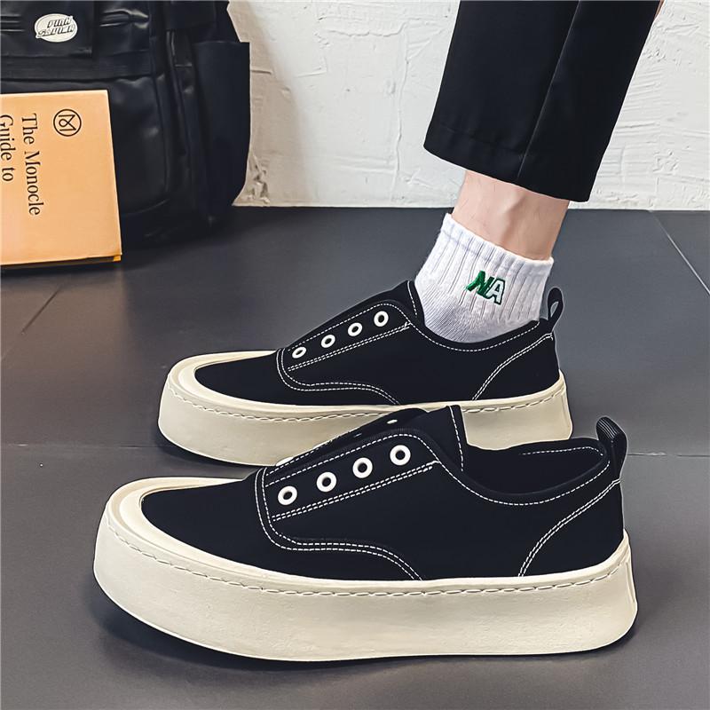 一脚蹬帆布鞋夏季新款厚底轻便懒人鞋透气百搭板鞋鞋子男潮休闲鞋