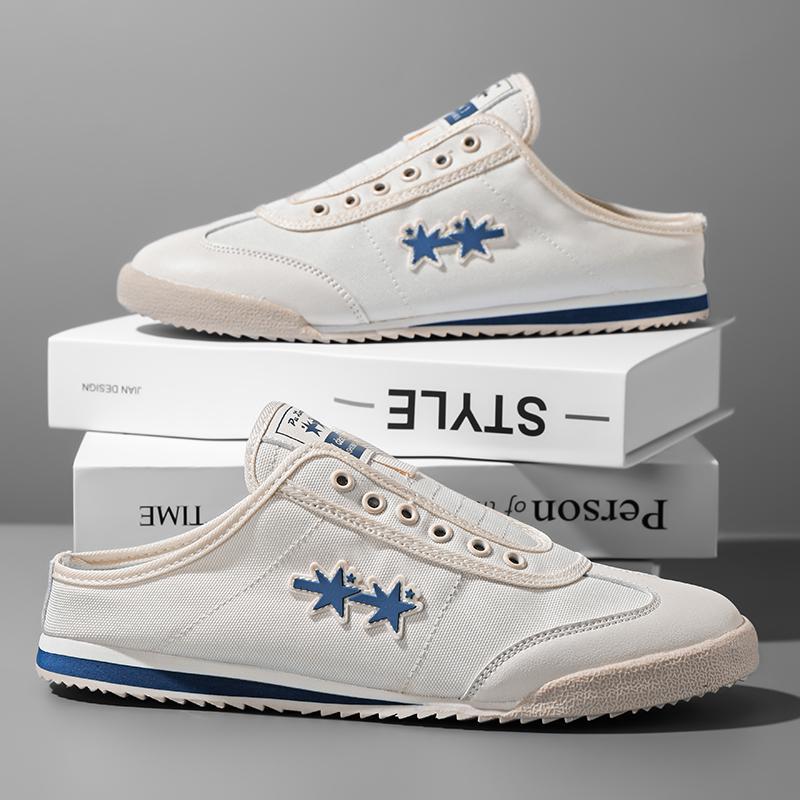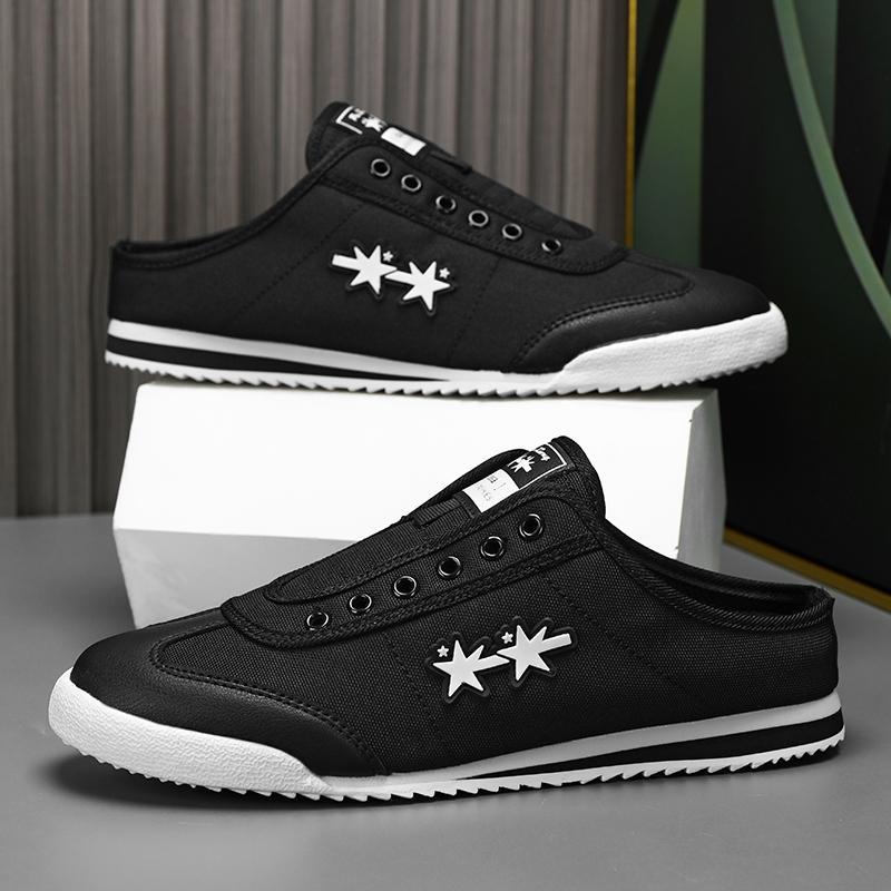 包头半拖鞋男款夏季透气网面一脚蹬休闲运动凉鞋懒人无后跟帆布鞋