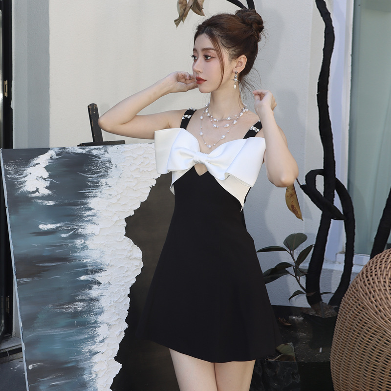 赫本风高级感生日小礼裙法式气质名媛蝴蝶结独特超好看吊带连衣裙