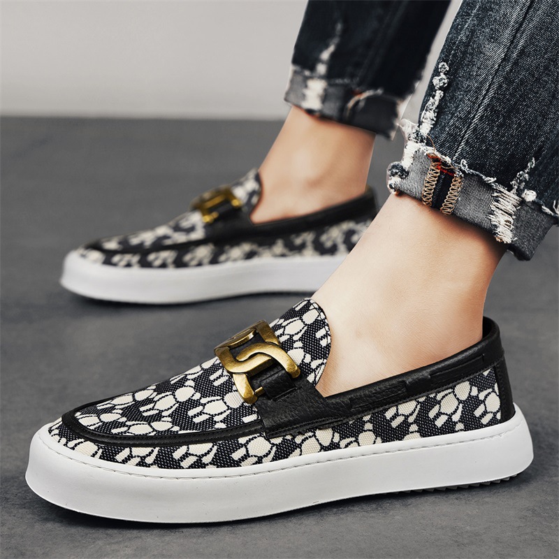 新款夏季懒人一脚蹬乐福鞋布面小熊舒适豆豆板鞋潮流开车鞋子