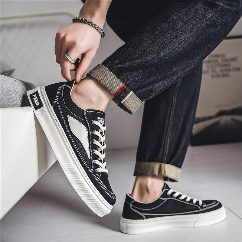 韩版板鞋夏季新款透气网面百搭休闲男鞋上班平底工作防滑鞋子