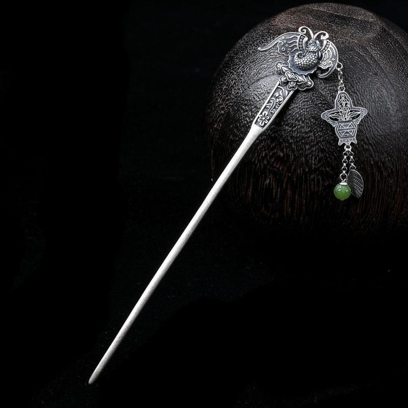 新款化蝶发簪女镀银流苏复古民族风簪子古装汉服发钗发饰头饰
