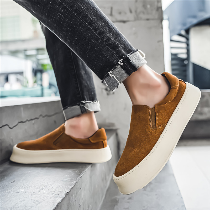 男鞋夏季懒人一脚蹬透气休闲运动鞋厚底男士潮流透气乐福鞋子