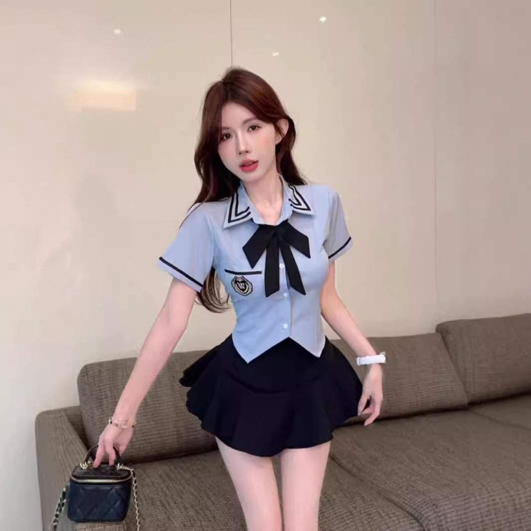 学院风日系两件套衬衫上衣蛋糕裙半身短裤裙子女夏季新款时尚套装