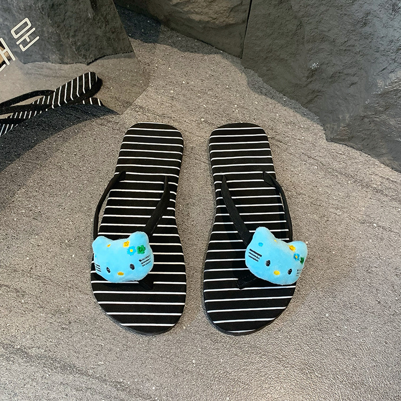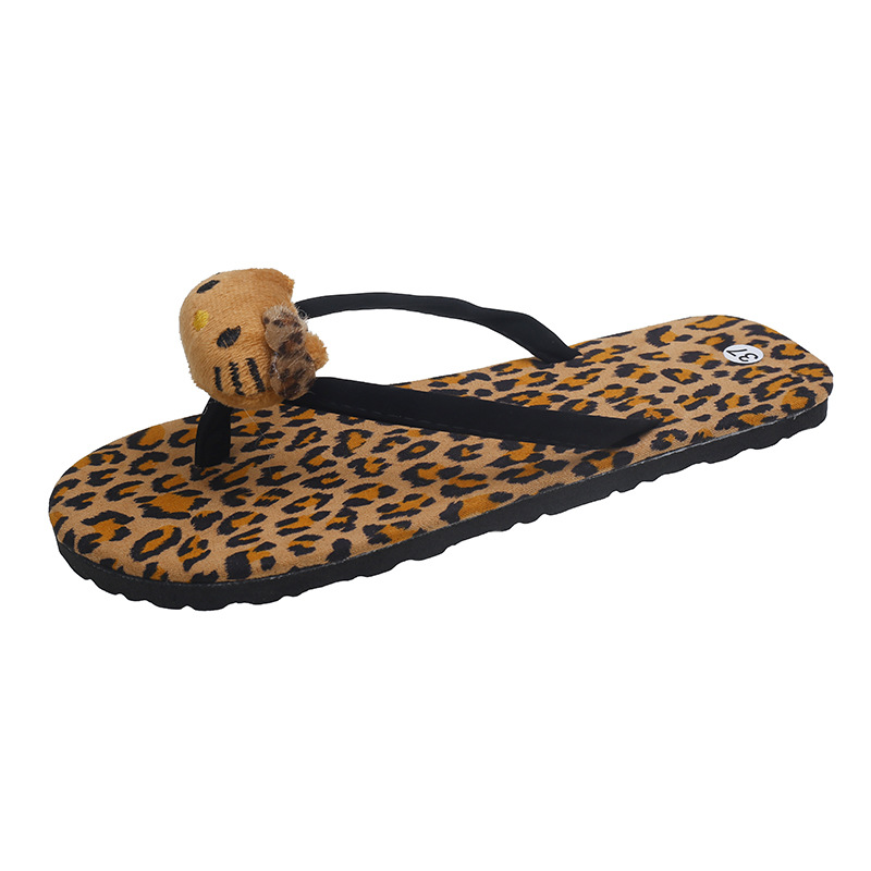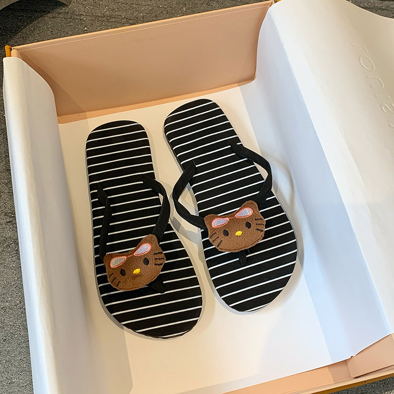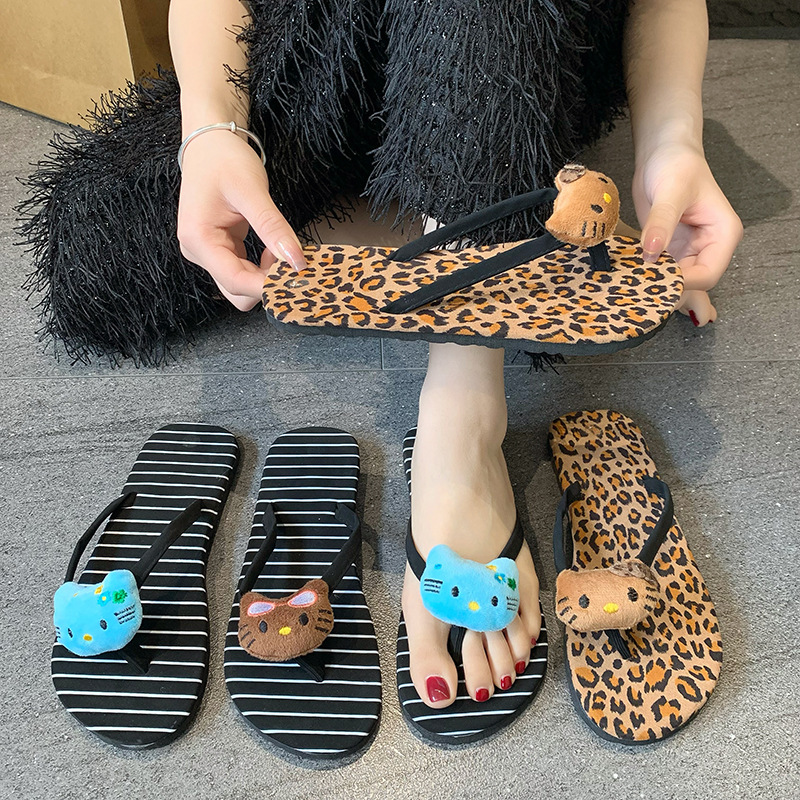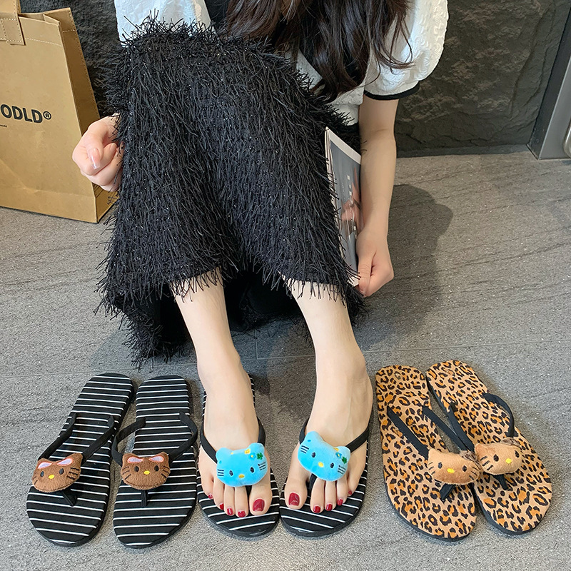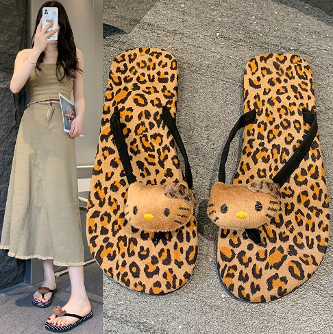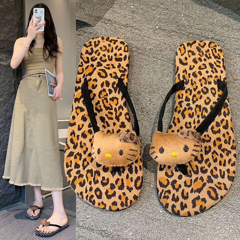 卡通新款可爱豹纹kitty人字拖鞋ins夏季居家百搭平底休闲沙滩凉拖