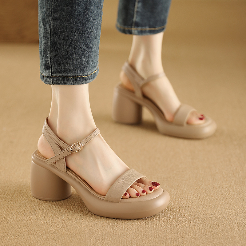 踩屎感厚底露趾凉鞋女新款夏季一字带小个子粗跟高跟女鞋