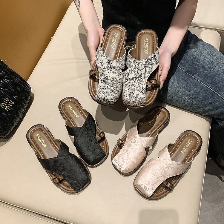 国风包头半拖鞋女夏外穿时尚新款厚底新中式镂空外出法式凉拖