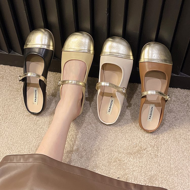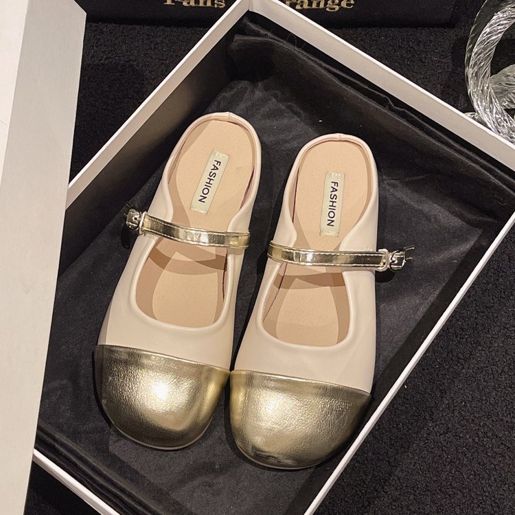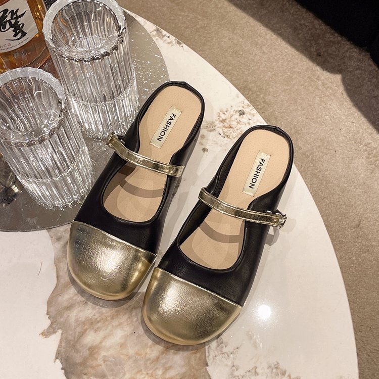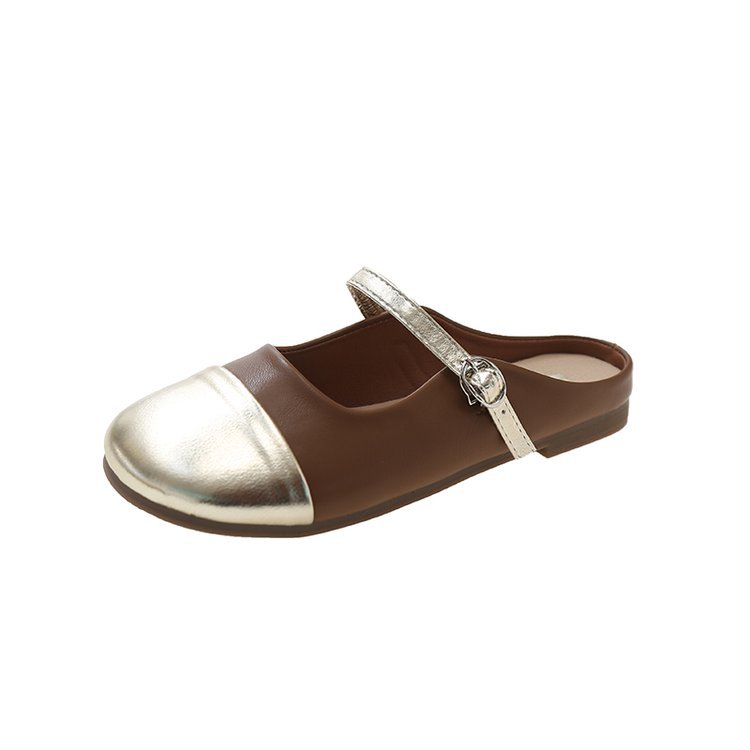 法式小香风平底包头银色玛丽珍半拖鞋女夏季新款休闲乐福鞋穆勒鞋