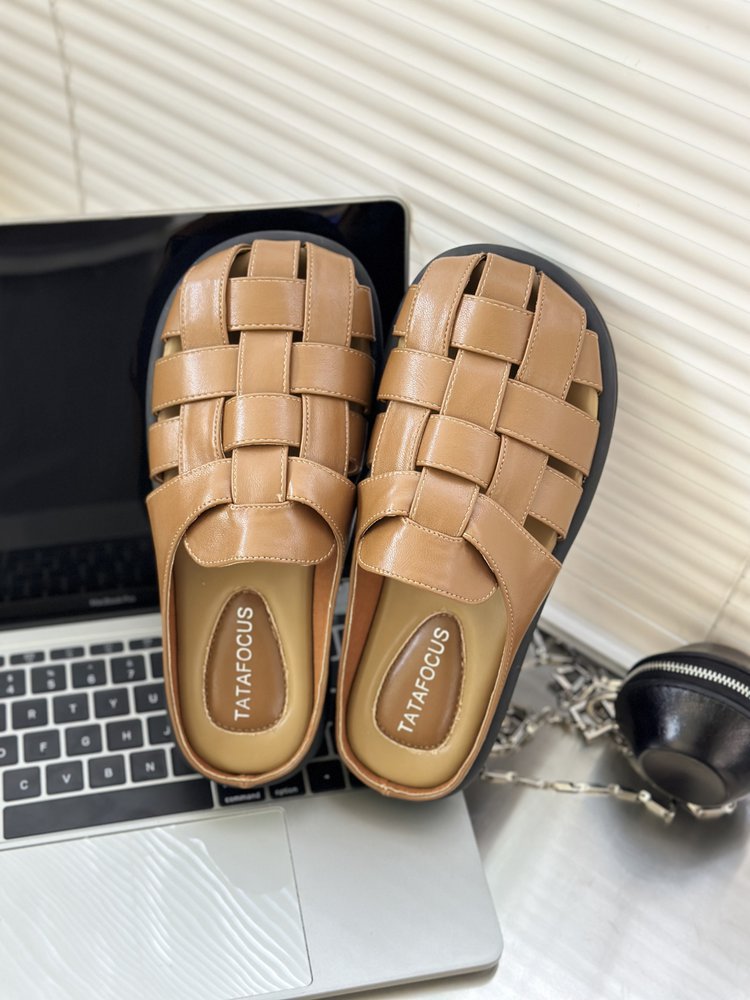 编织猪笼鞋女夏季平底无后跟懒人鞋新款春秋超火包头半拖鞋子