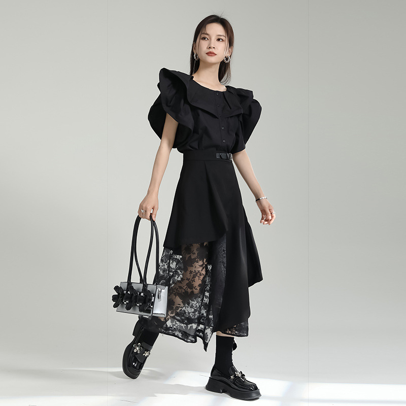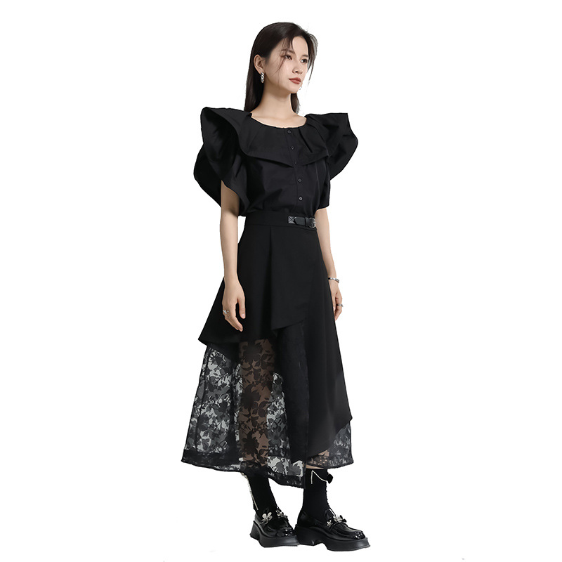 中创日臻新中式不规则拼接纱网半身裙高腰个性夏季中长裙潮人