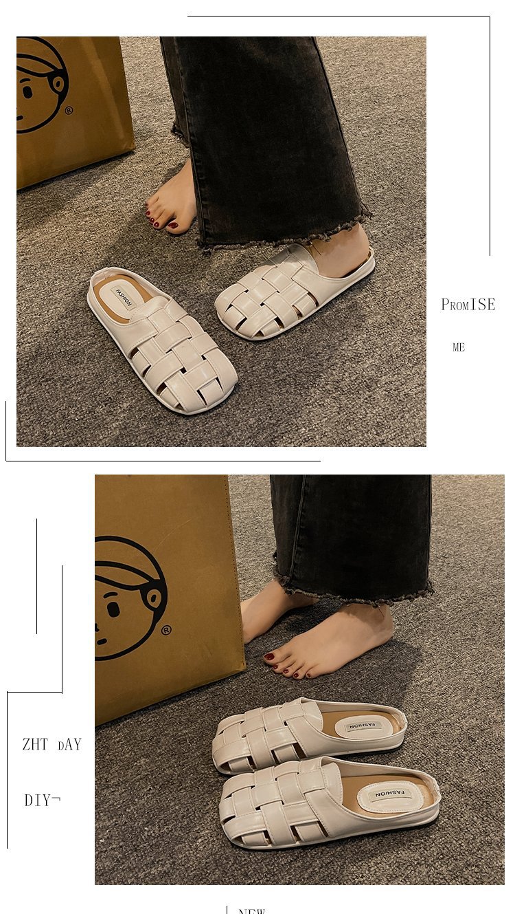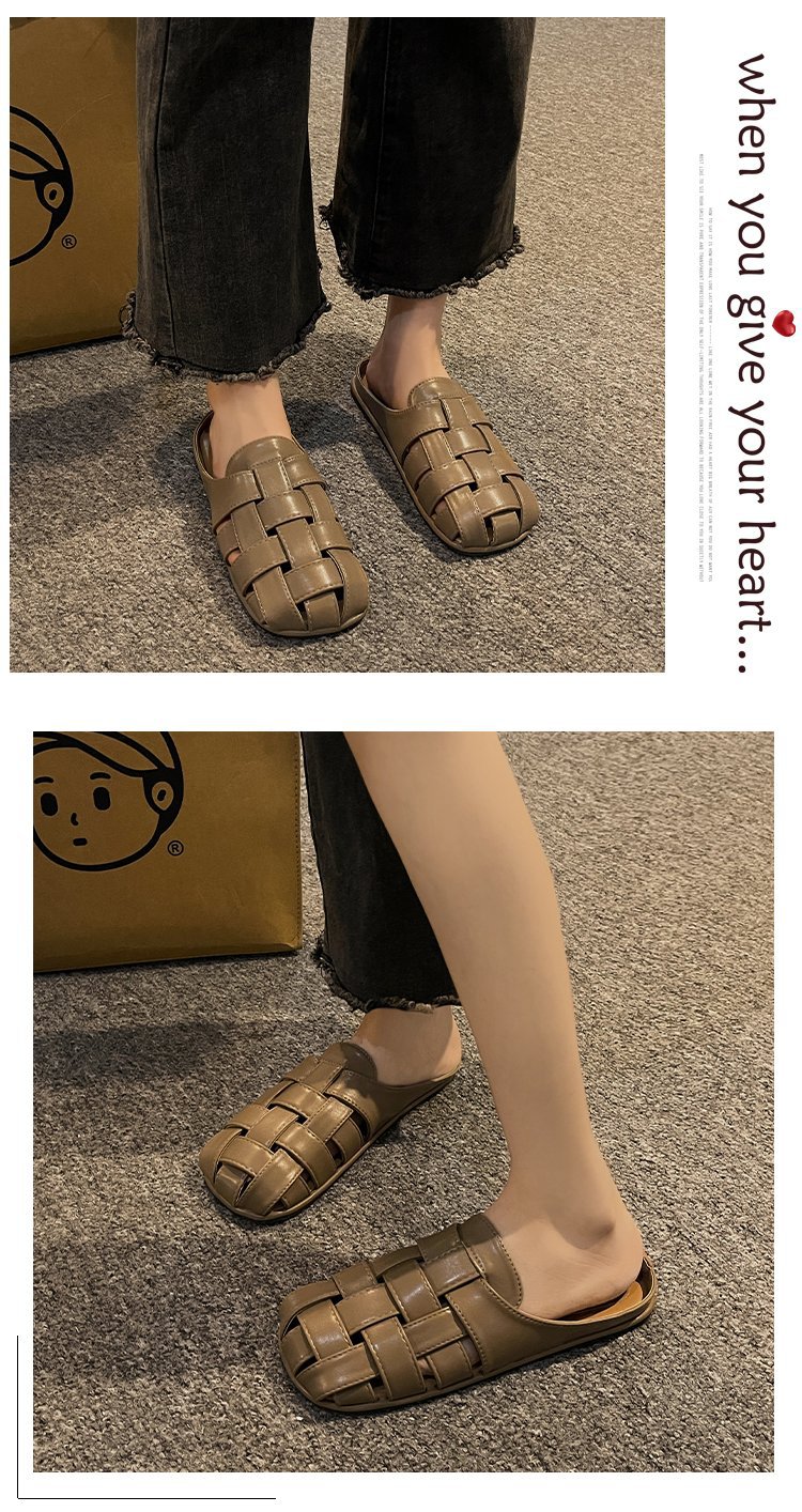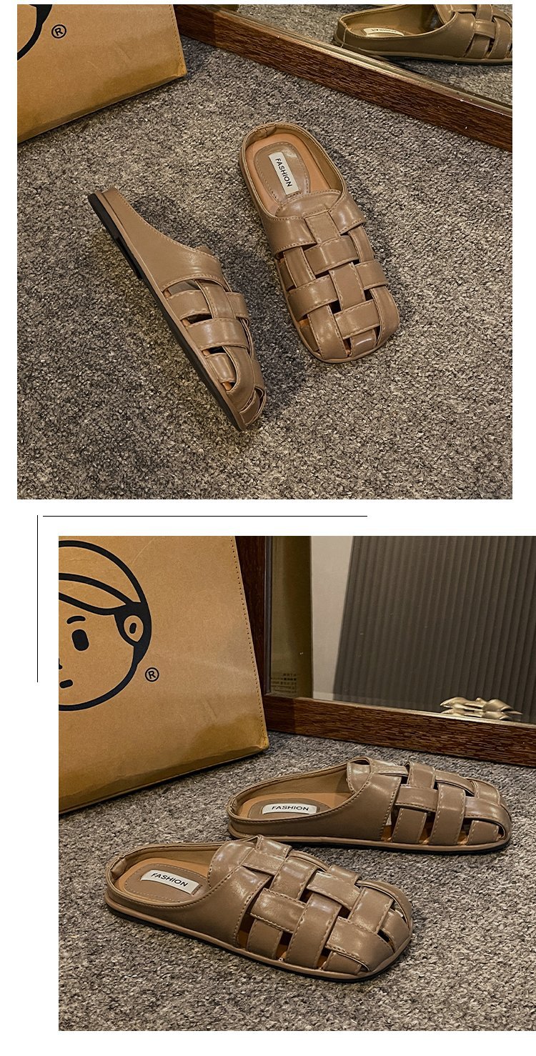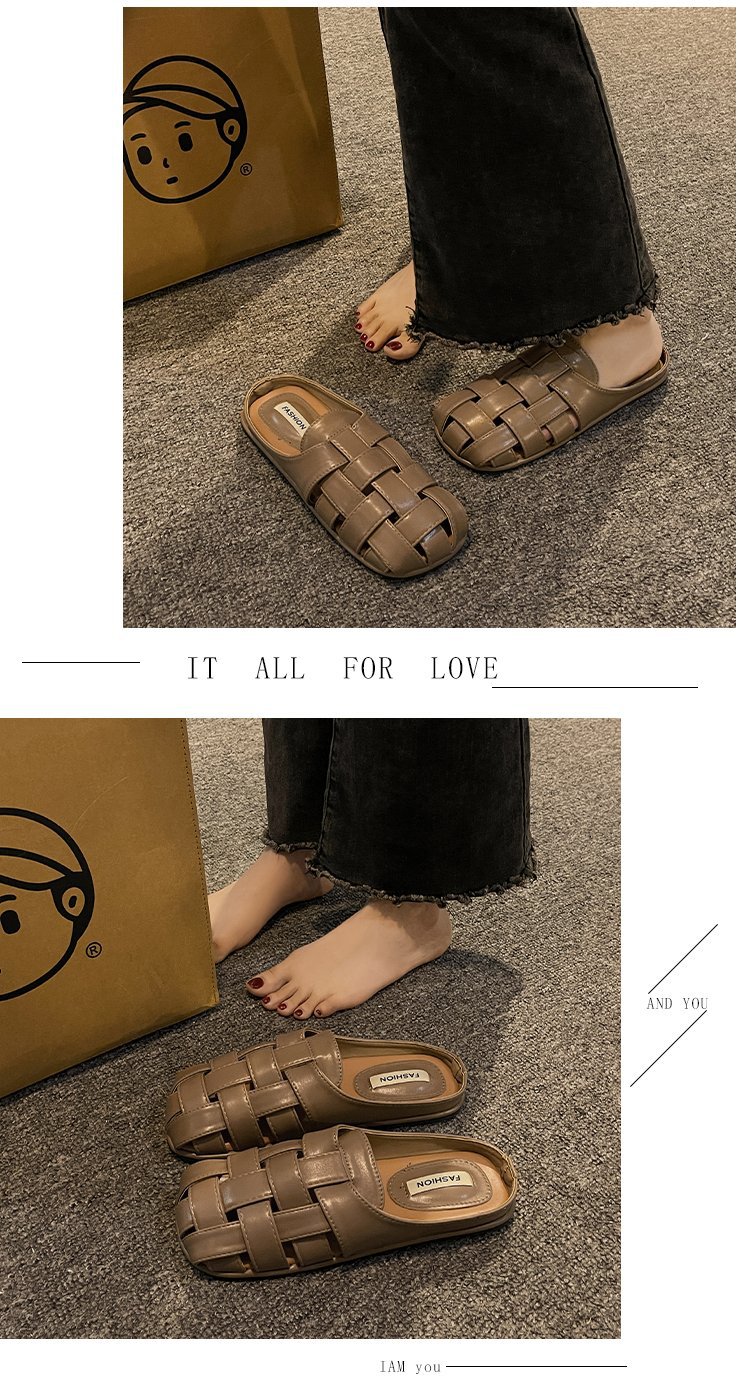 镂空编织包头半拖鞋女夏外穿新款一脚蹬懒人休闲罗马穆勒凉拖