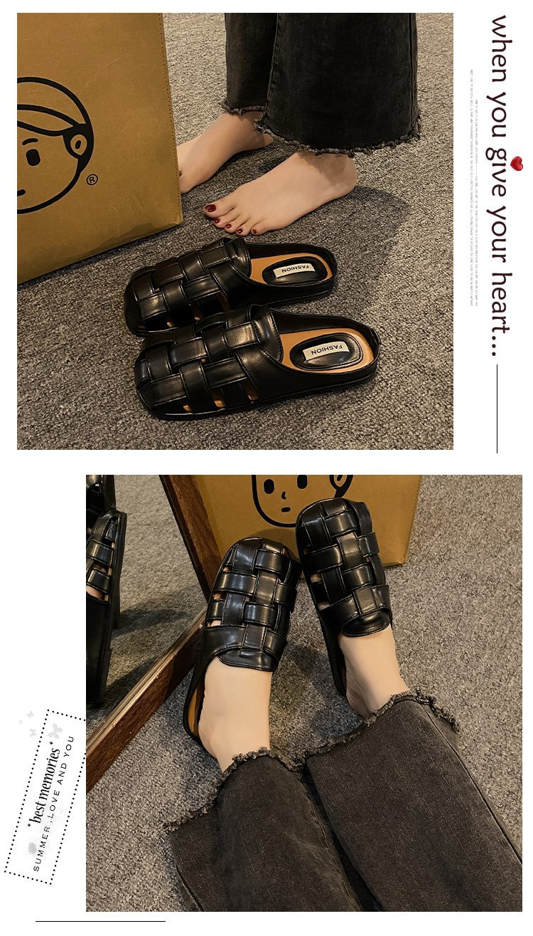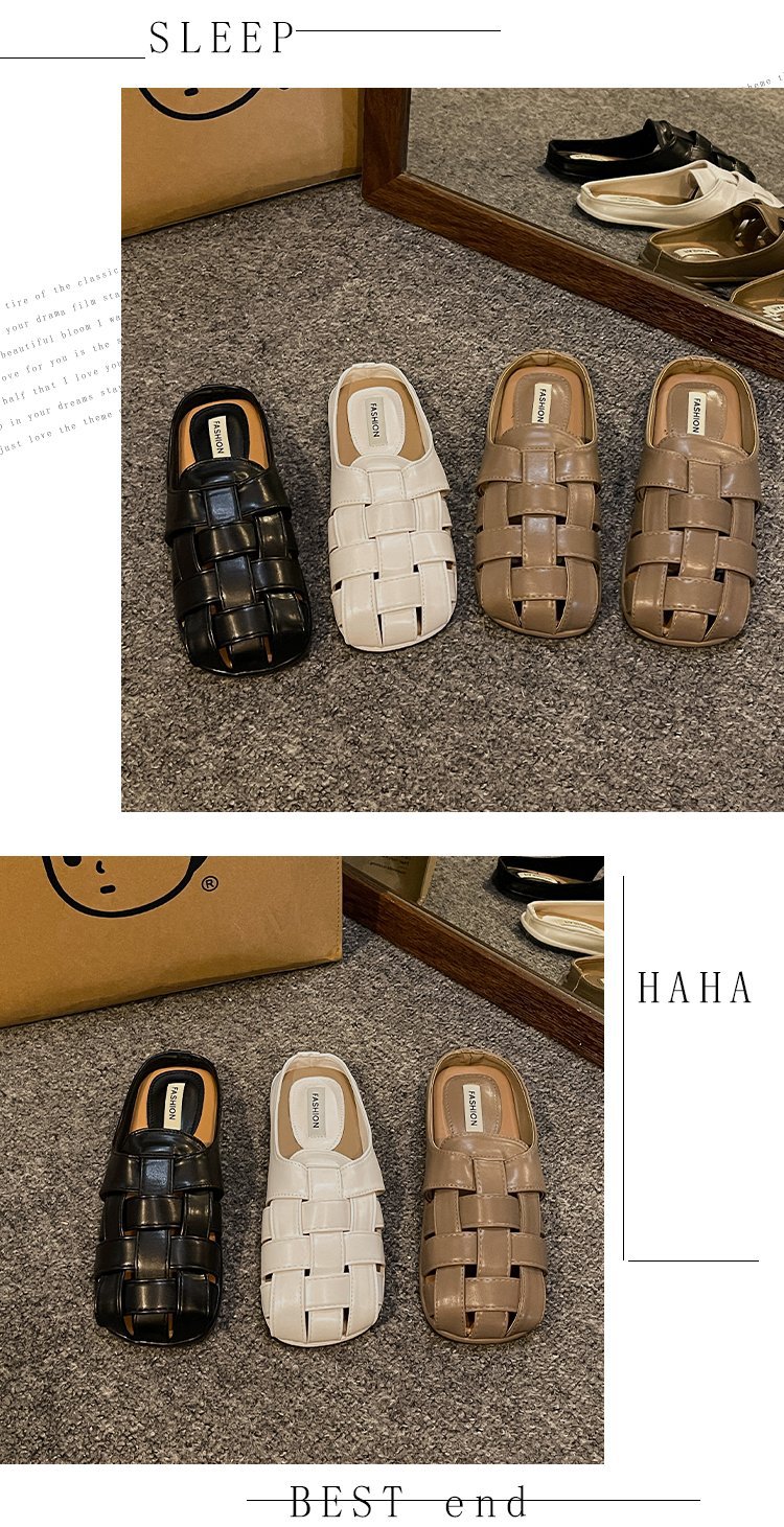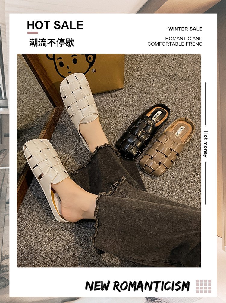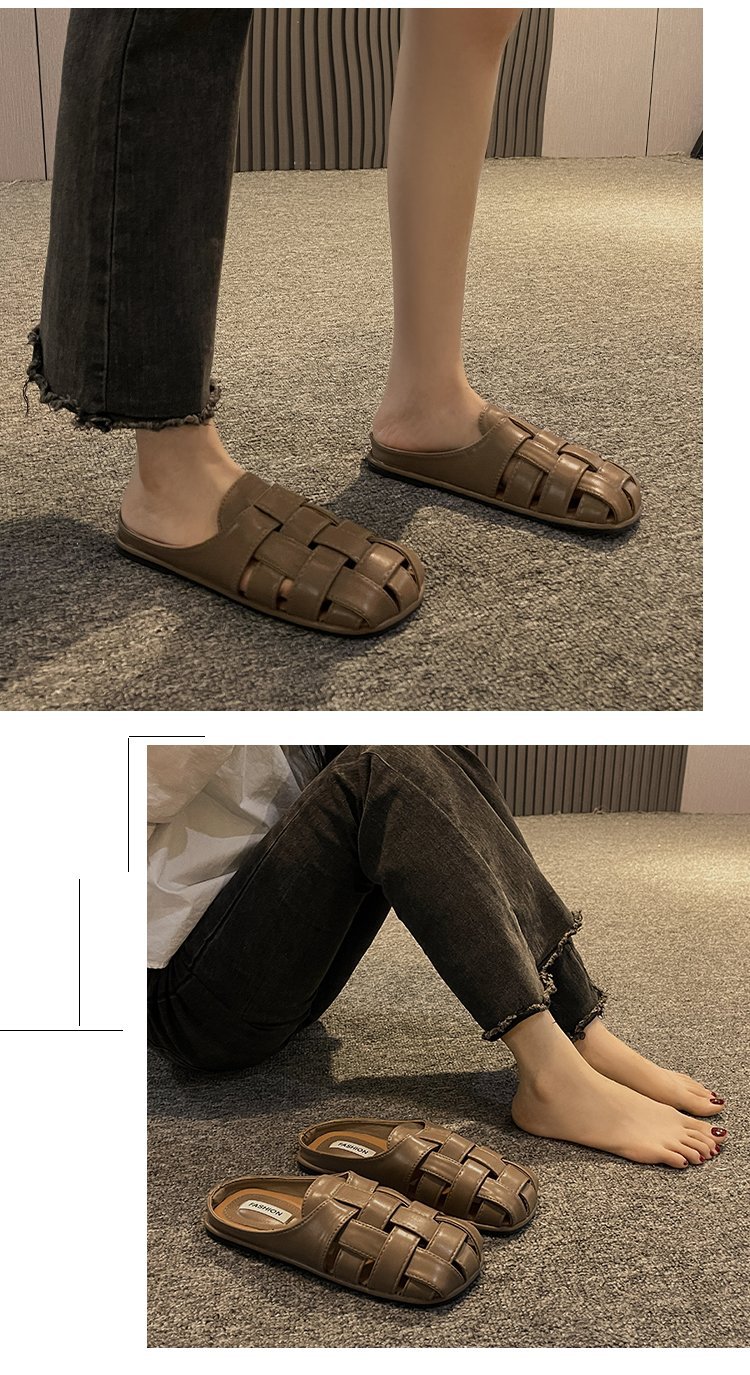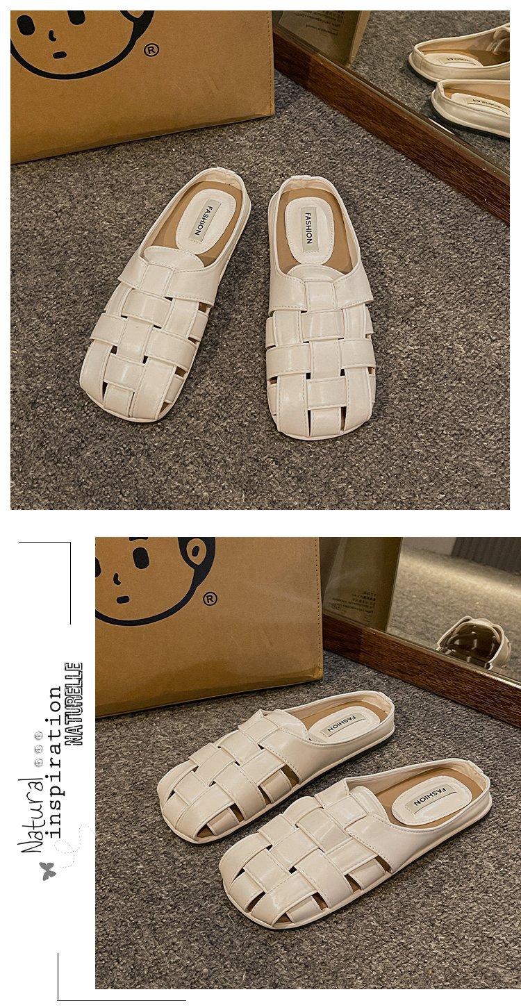 镂空编织包头半拖鞋女夏外穿新款一脚蹬懒人休闲罗马穆勒凉拖