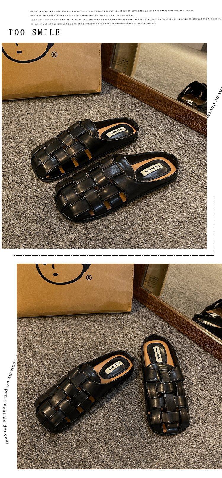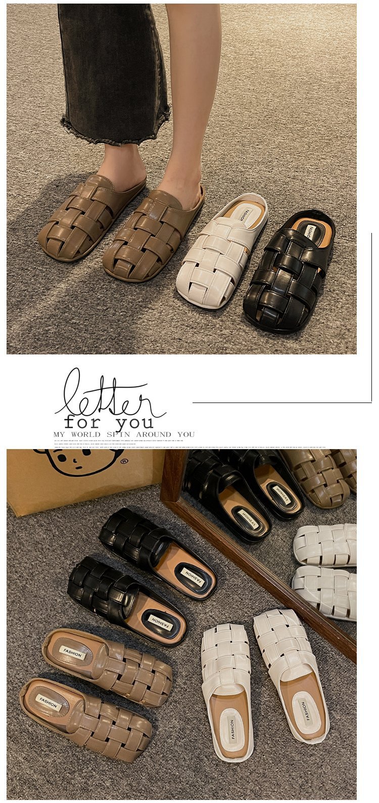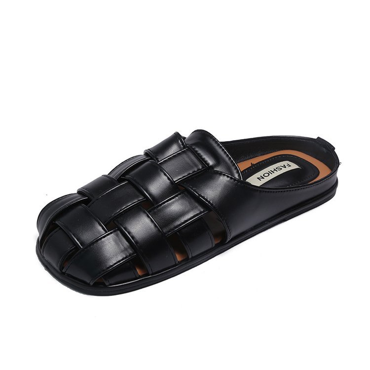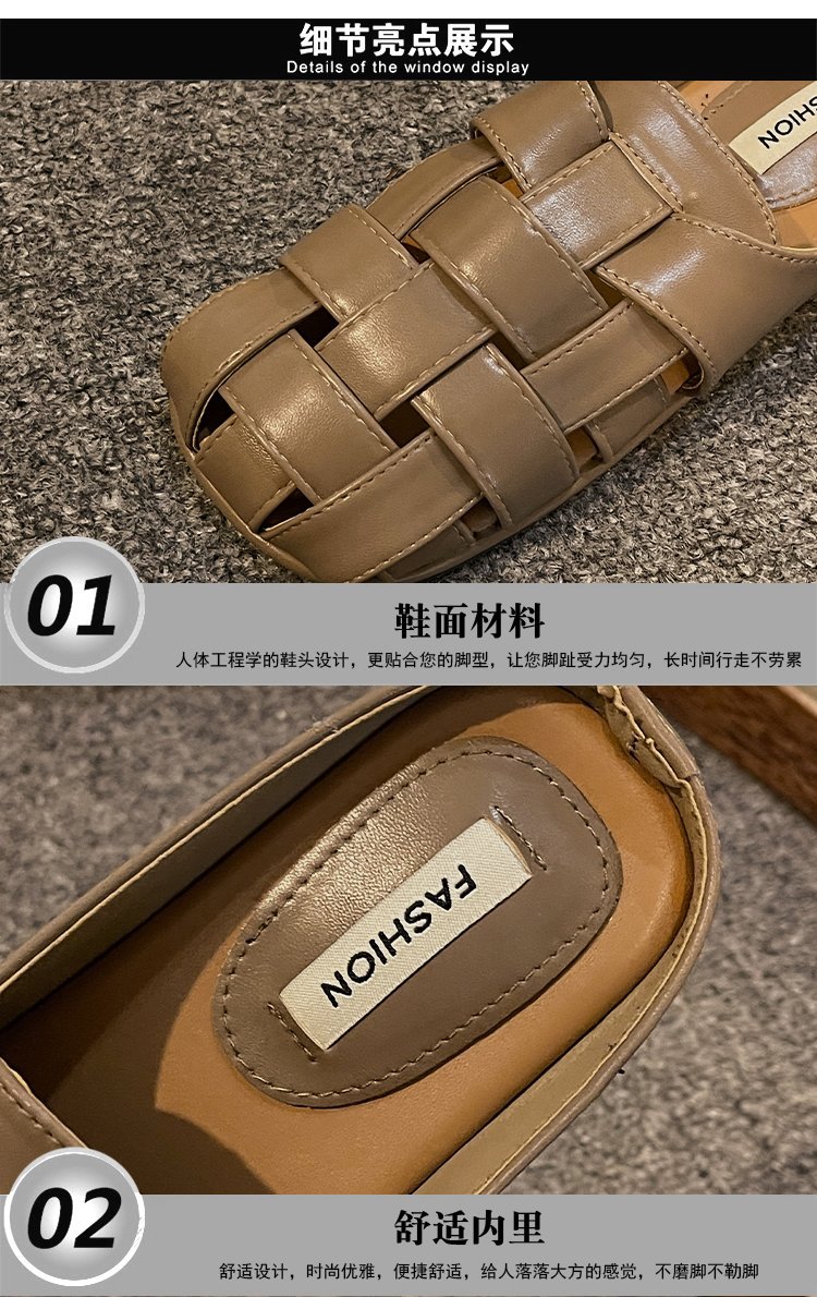 镂空编织包头半拖鞋女夏外穿新款一脚蹬懒人休闲罗马穆勒凉拖