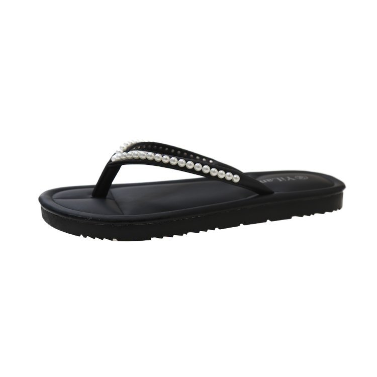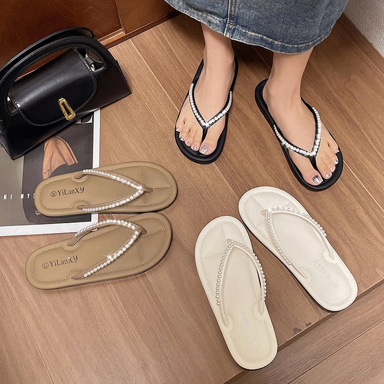 人字拖鞋女夏外穿夹趾凉拖年新款网红珍珠平底沙滩鞋ins超火