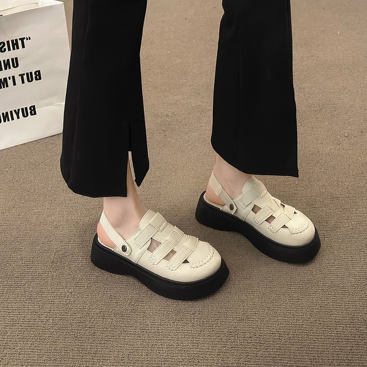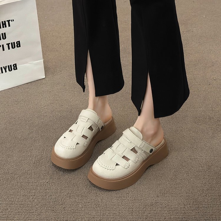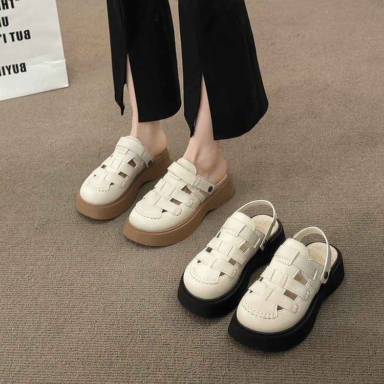 厚底两穿镂空包头凉鞋女夏季新款洞洞猪笼森系罗马半拖鞋外穿