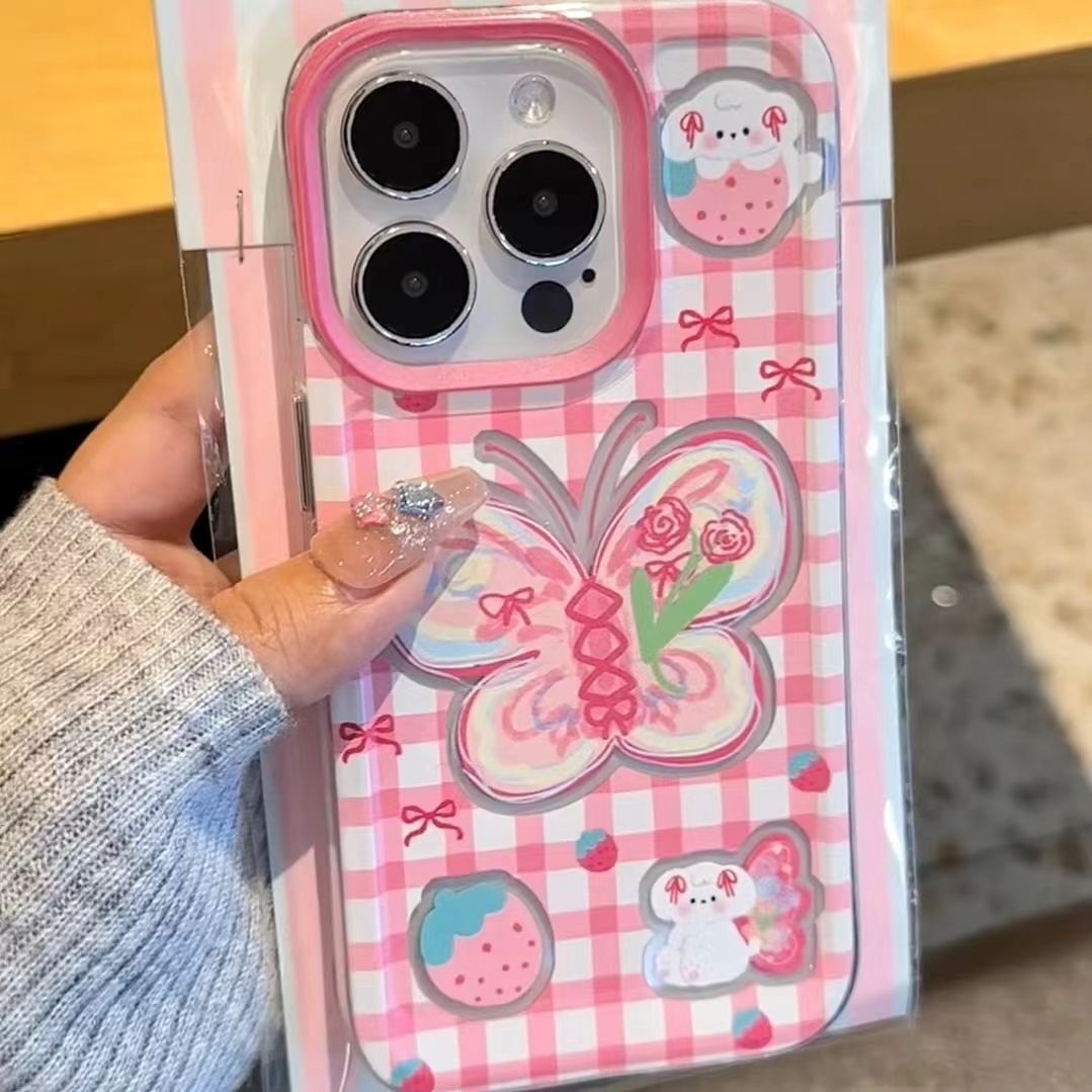 格子蝴蝶iPhone15promax手机壳苹果13全包14/12软壳11新款卡通xR