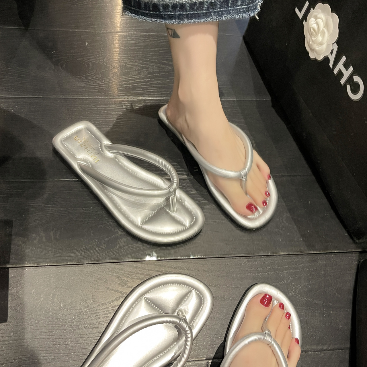 银色人字拖女ins潮夏季外穿时尚软底夹脚沙滩海边人字拖鞋女