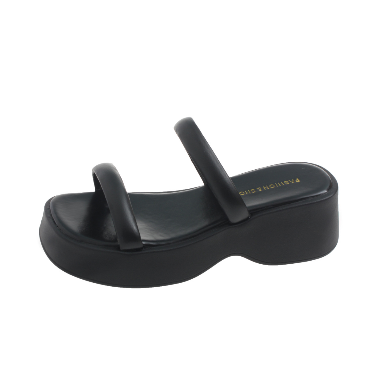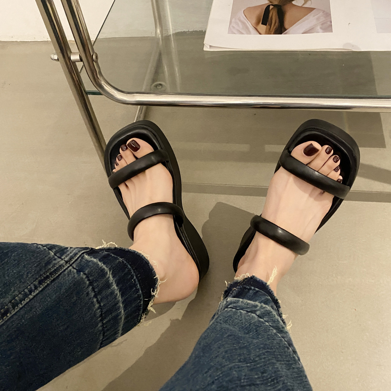 厚底小个子增高银色拖鞋女夏外穿简约一字带坡跟高跟凉鞋大码凉鞋