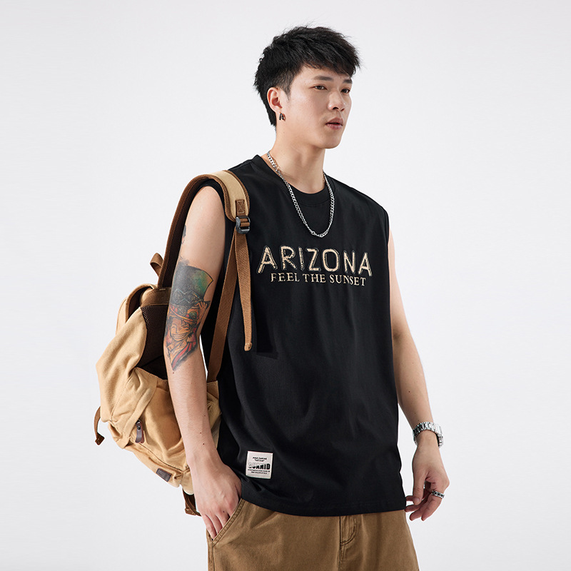 夏季无袖T恤男潮牌字母宽松大码篮球运动健身坎肩汗衫背心潮
