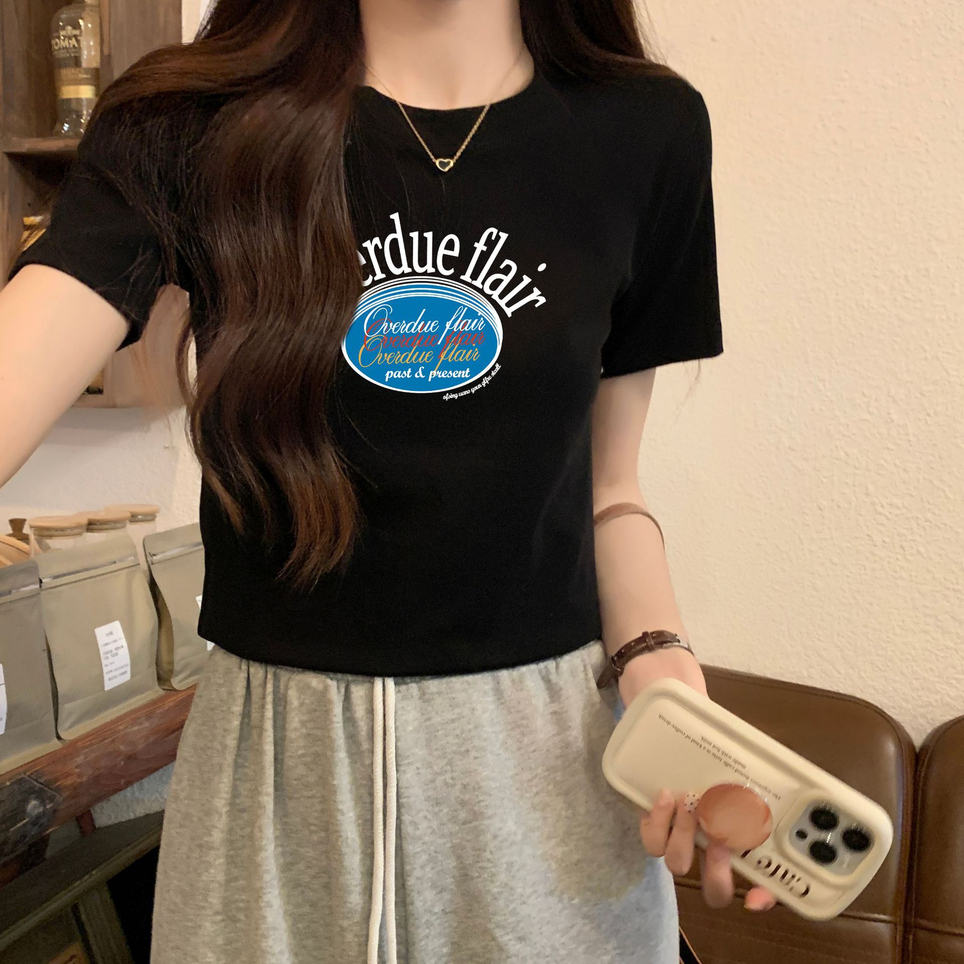 欧货短袖T恤女半袖夏装新款正肩印花休闲百搭修身上衣潮