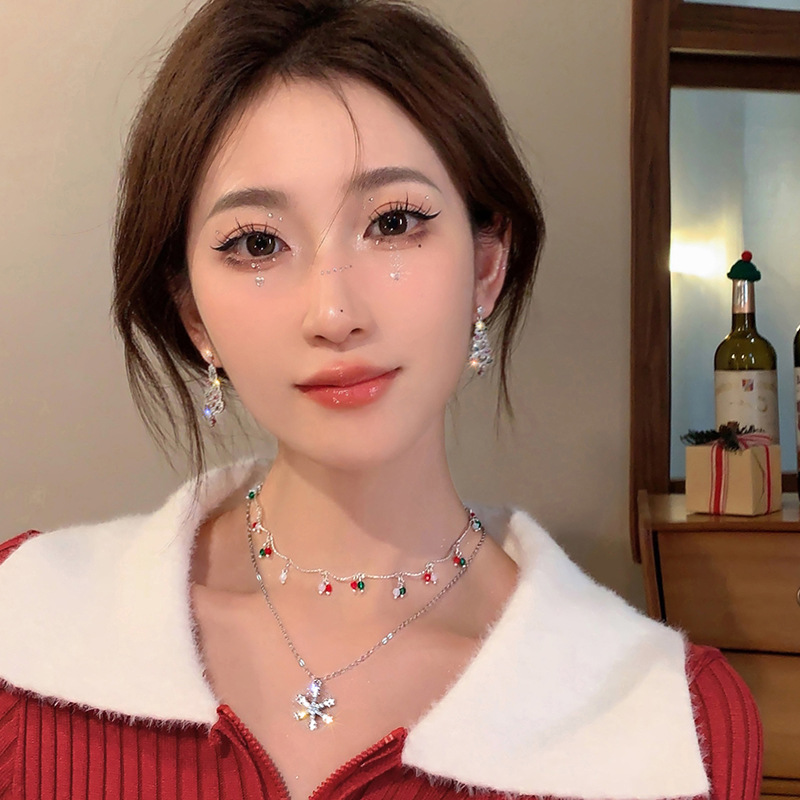 春日浪漫!彩色串珠雪花双层项链轻奢小众高级感颈链锁骨链配饰女