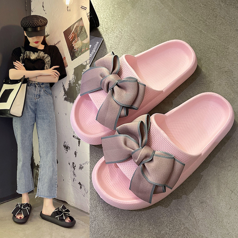 踩屎感凉拖鞋ins蝴蝶结厚底情侣浴室拖鞋夏季批发女eva拖鞋