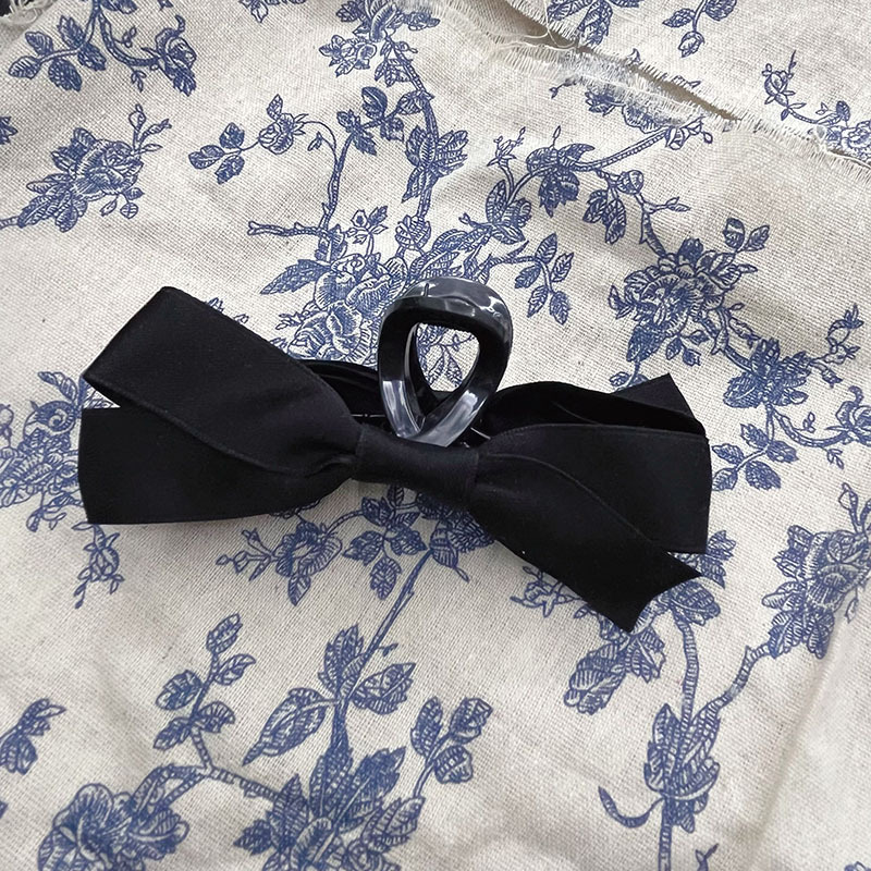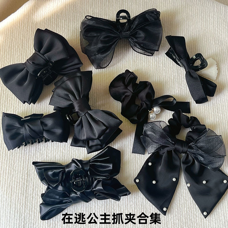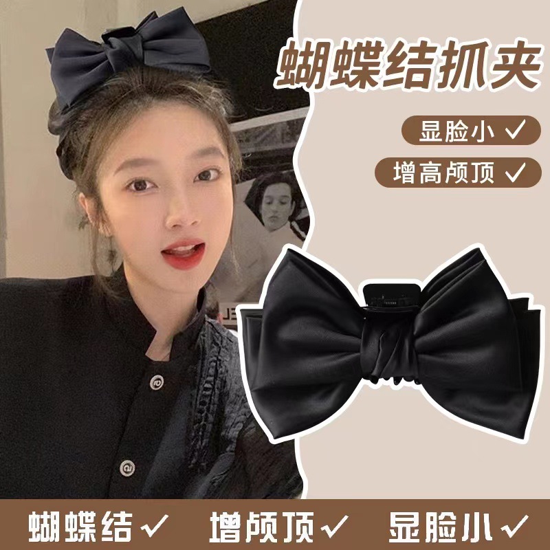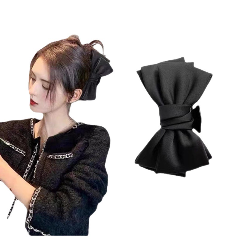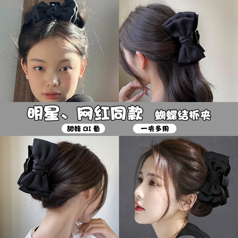Zhang Yuxin's same black double-sided bow clip with a high-end design, featuring a large shark clip with curled hair on the back of the head