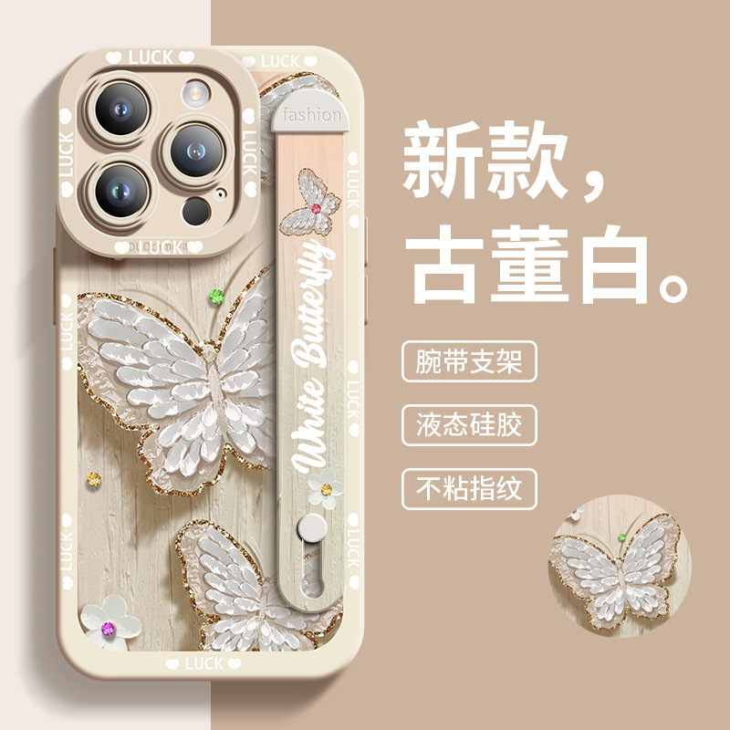 适用于苹果13手机壳高级感iphone15pro硅胶女款超薄14奶油蝴蝶12p