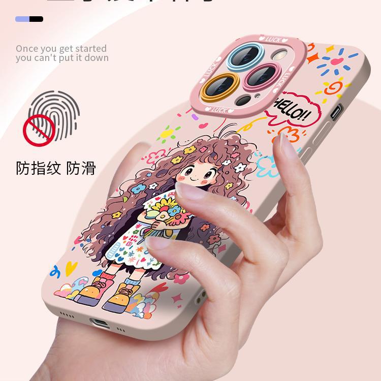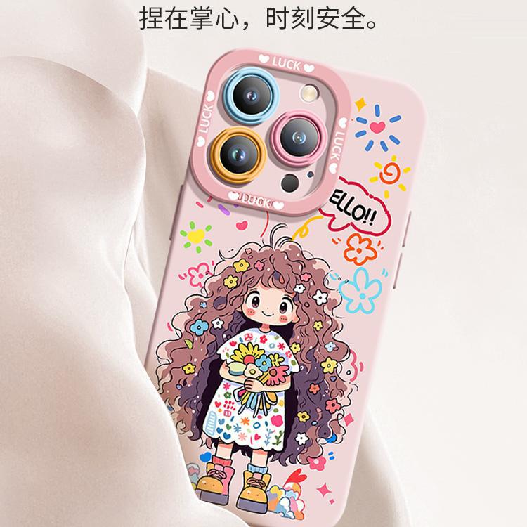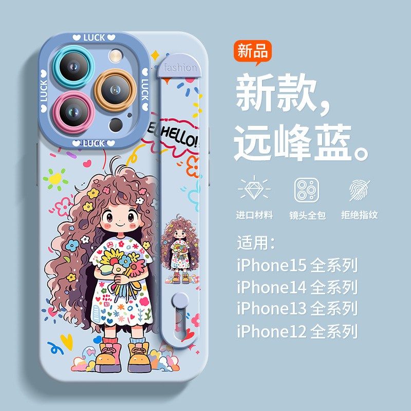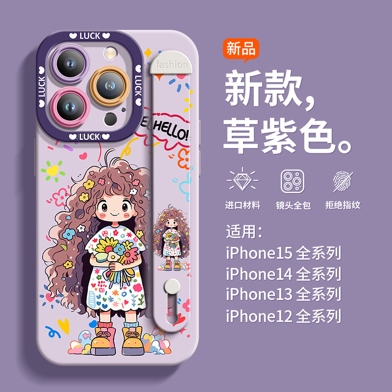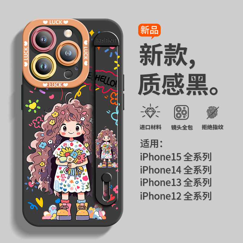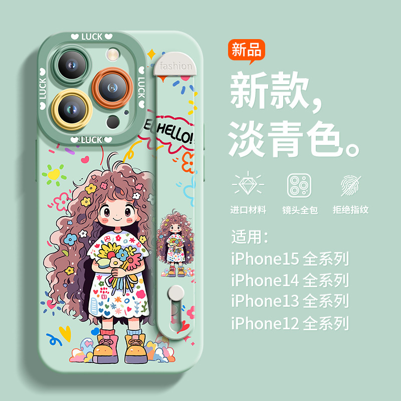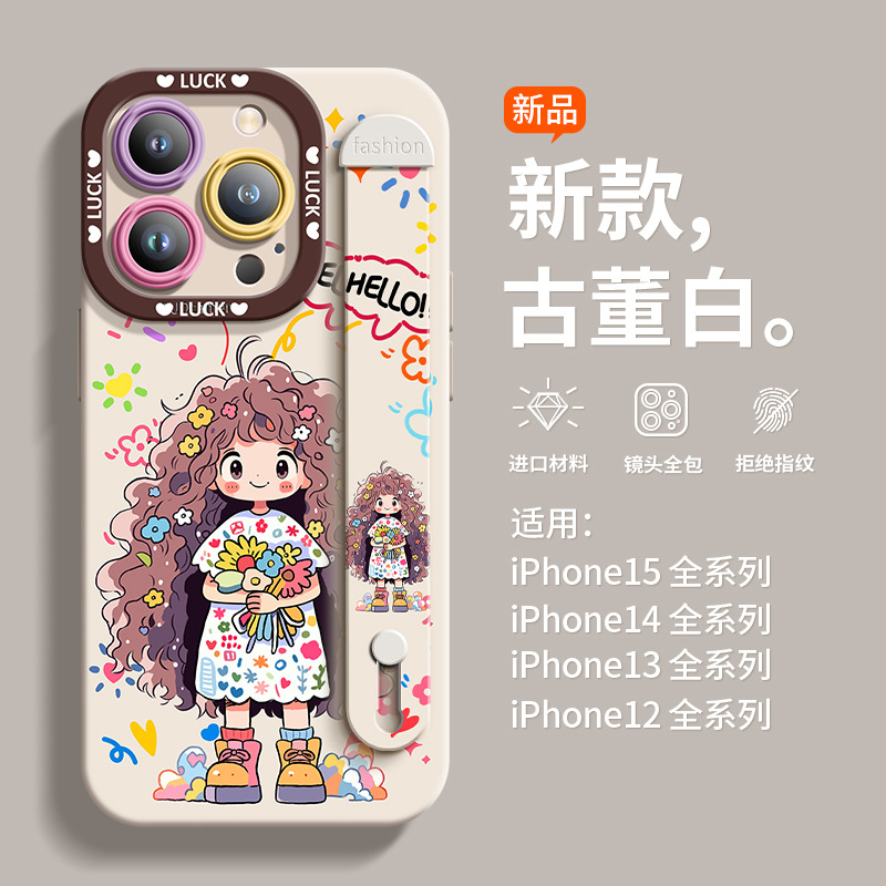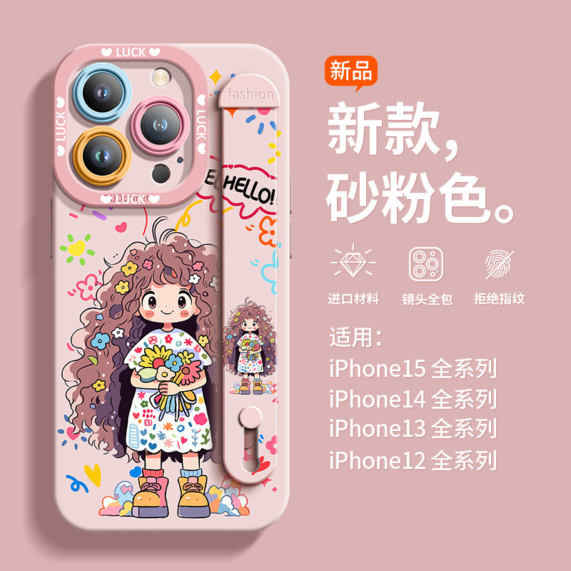 适用于苹果14硅胶手机壳捧花女孩夏季全包唯美保护壳腕带爆款耐脏