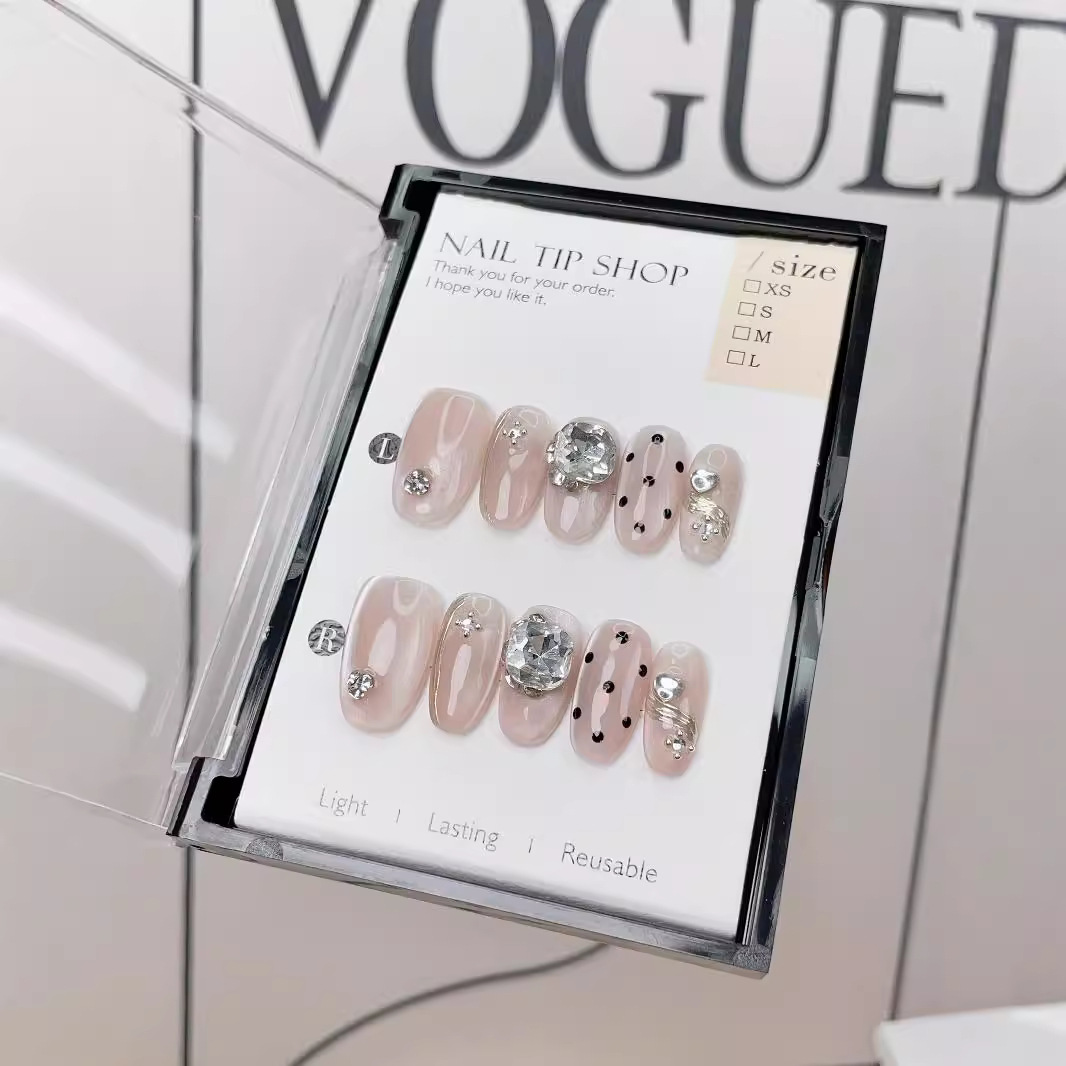 月光手书纯手工光疗穿戴甲片高级感晶石猫眼爆闪钻简约假指甲贴片