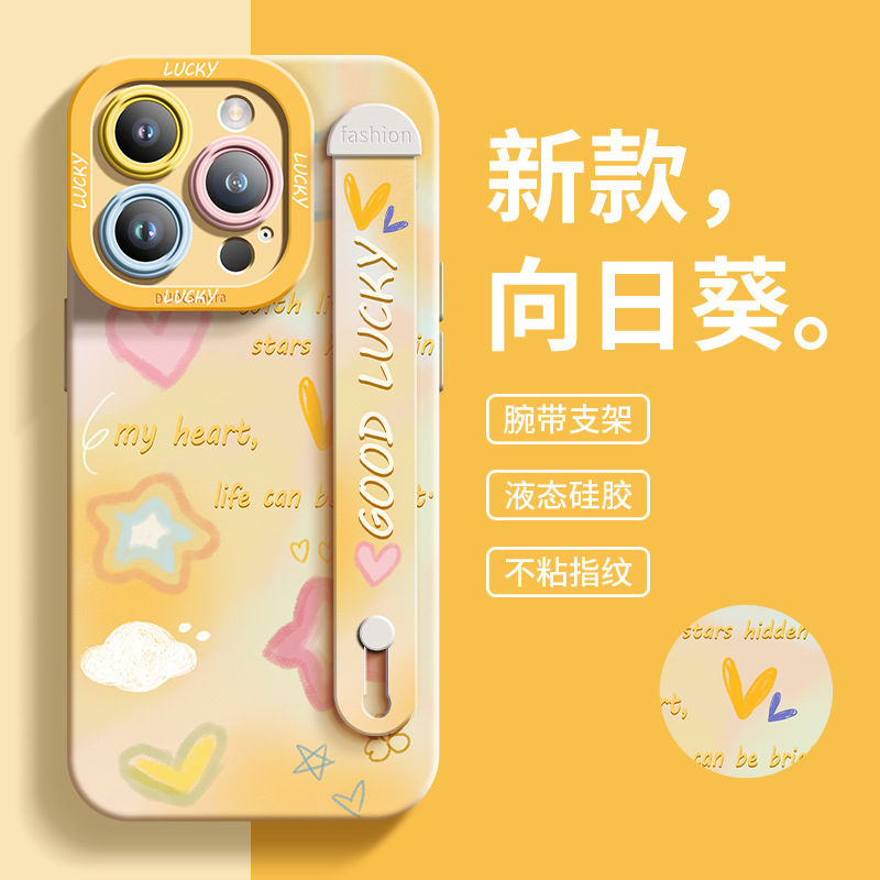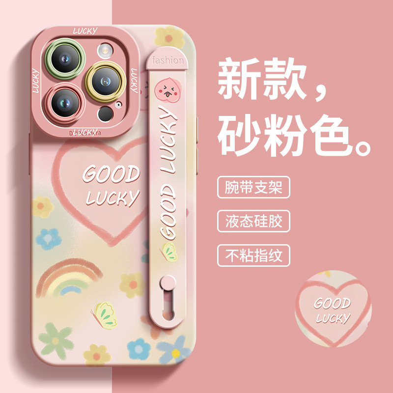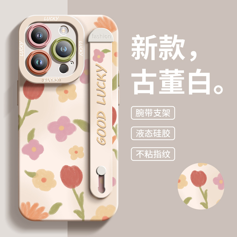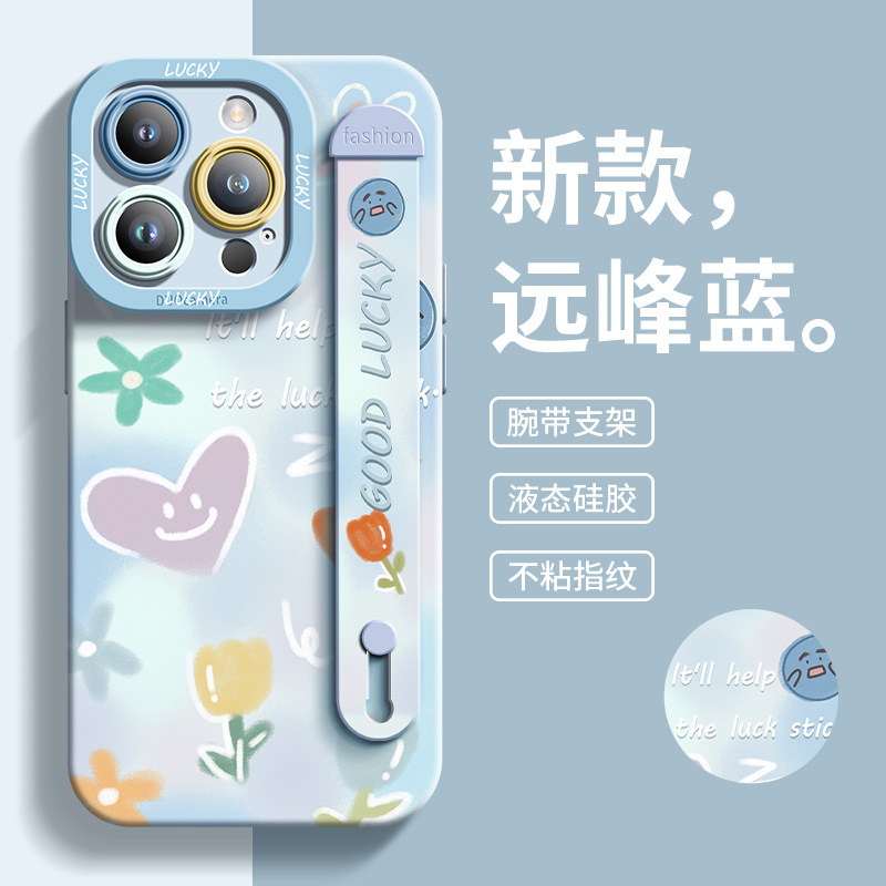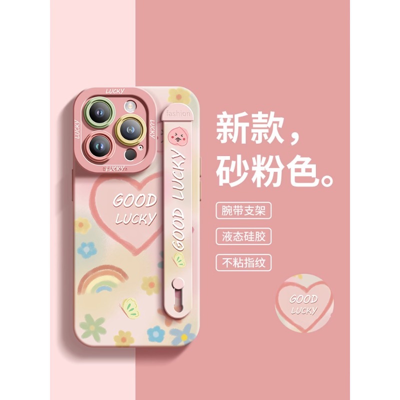 适用于苹果16手机壳可爱涂鸦iPhone11全包15硅胶流行iPhone14腕带
