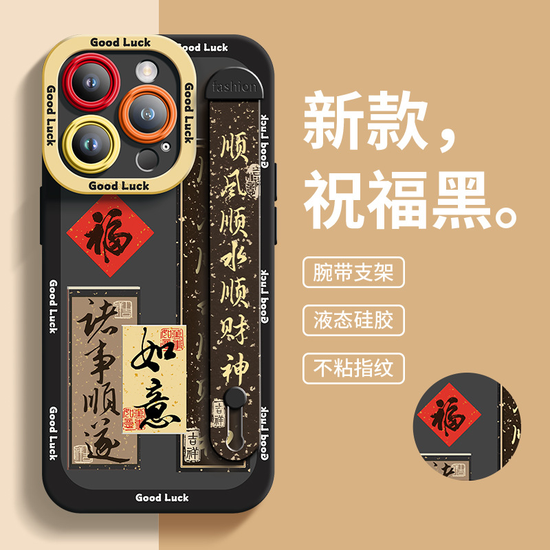 适用于苹果15promax手机壳祝福现代全包iphone13硅胶男女款支架14