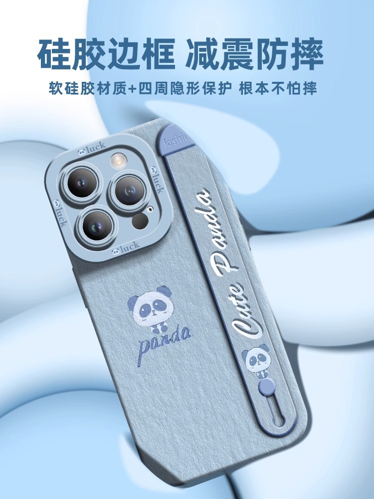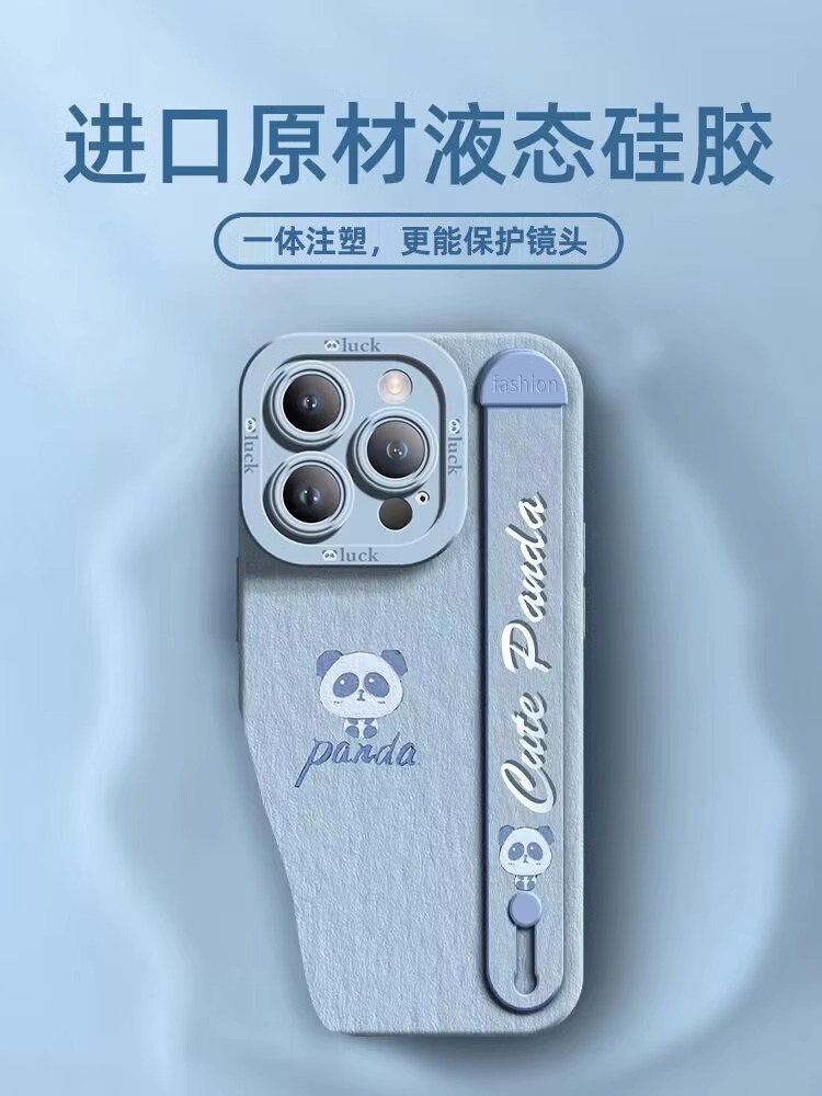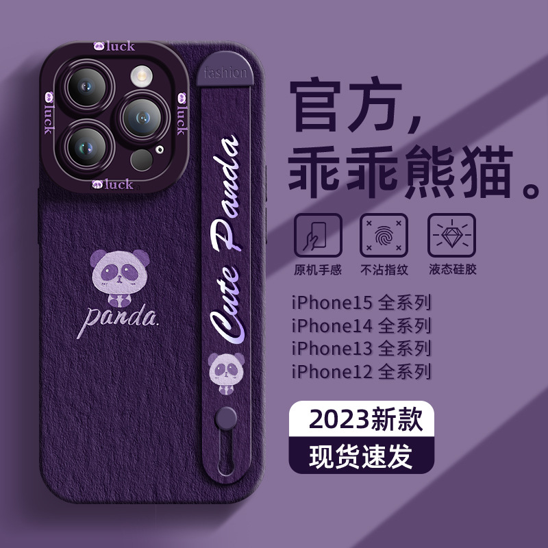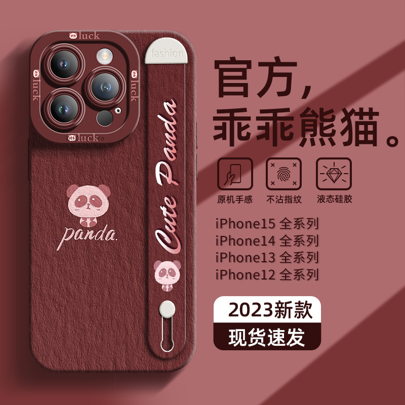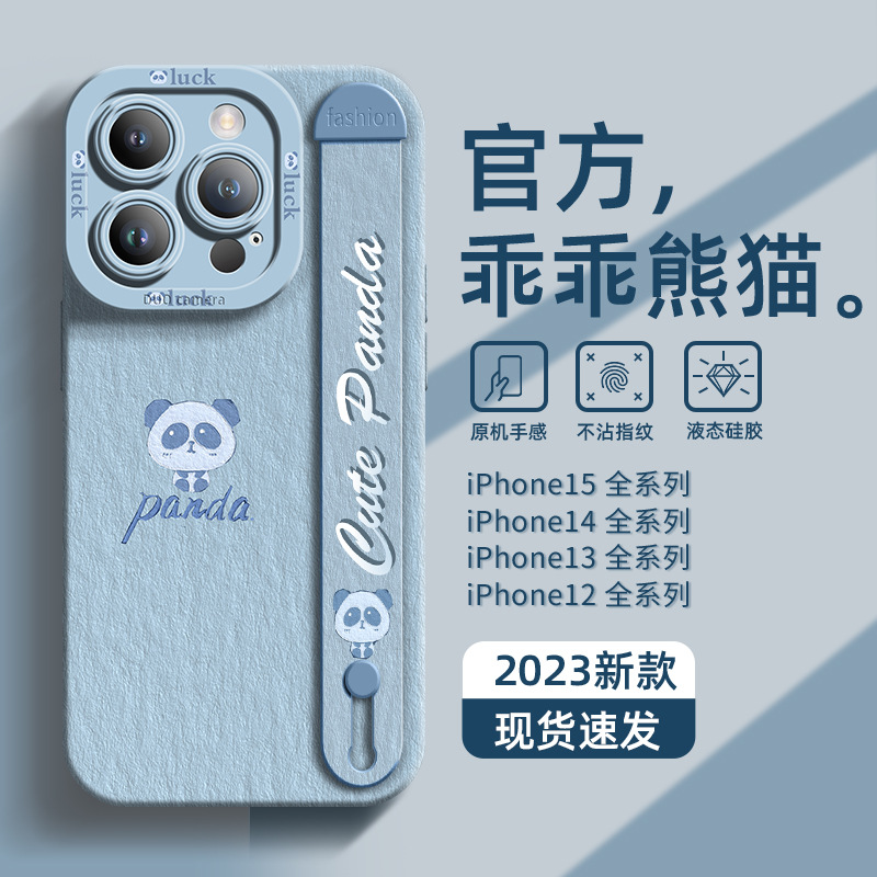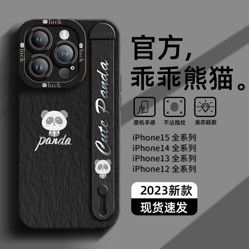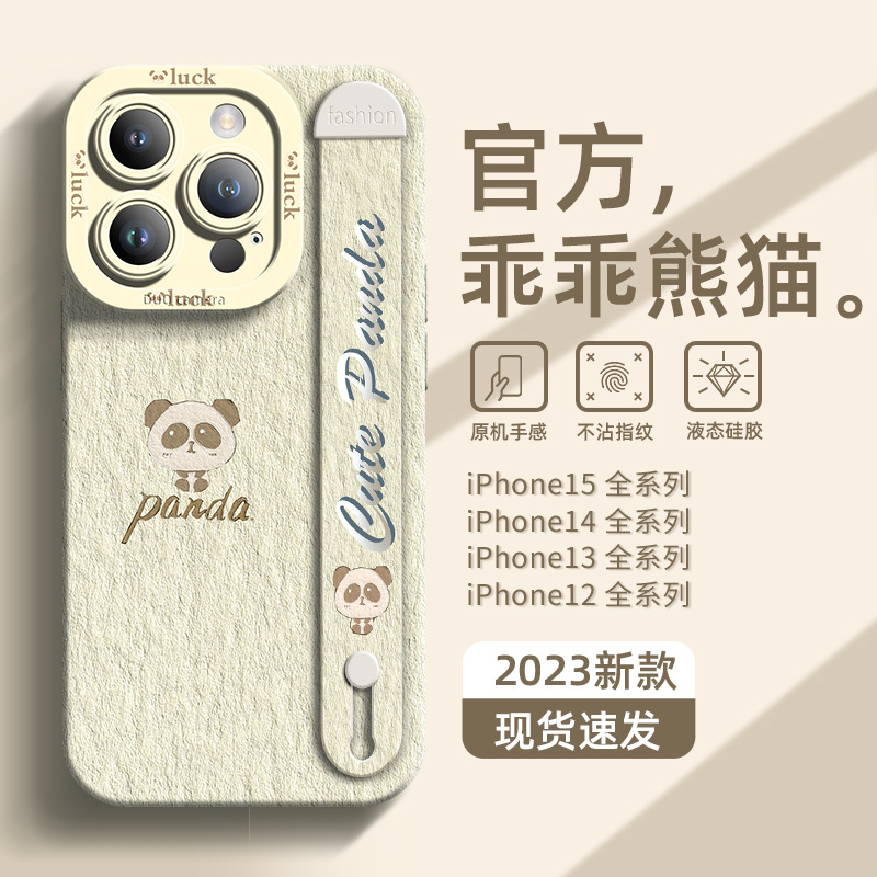 适用于苹果15手机壳腕带新款iphone15promax可爱14pro乖乖熊猫13