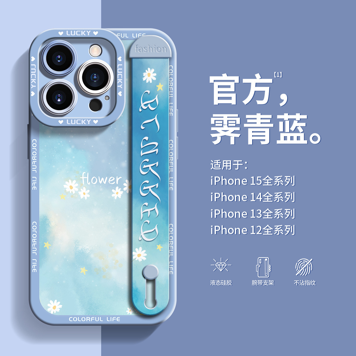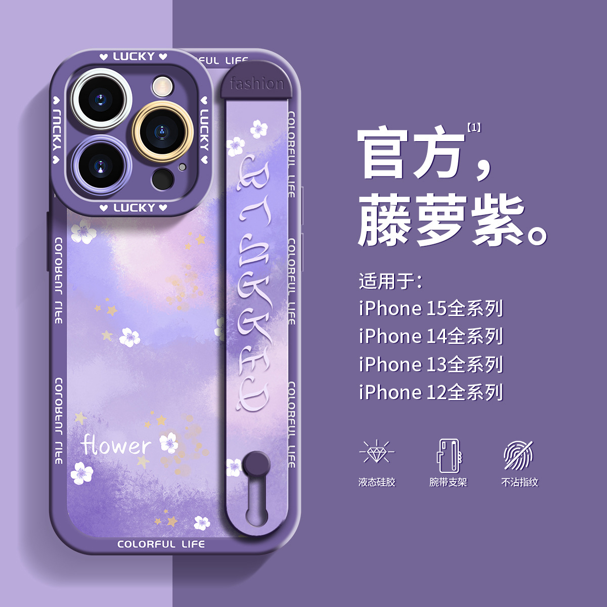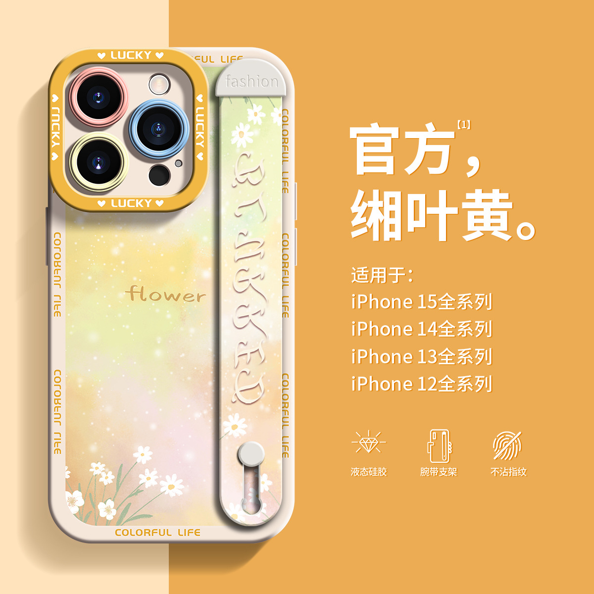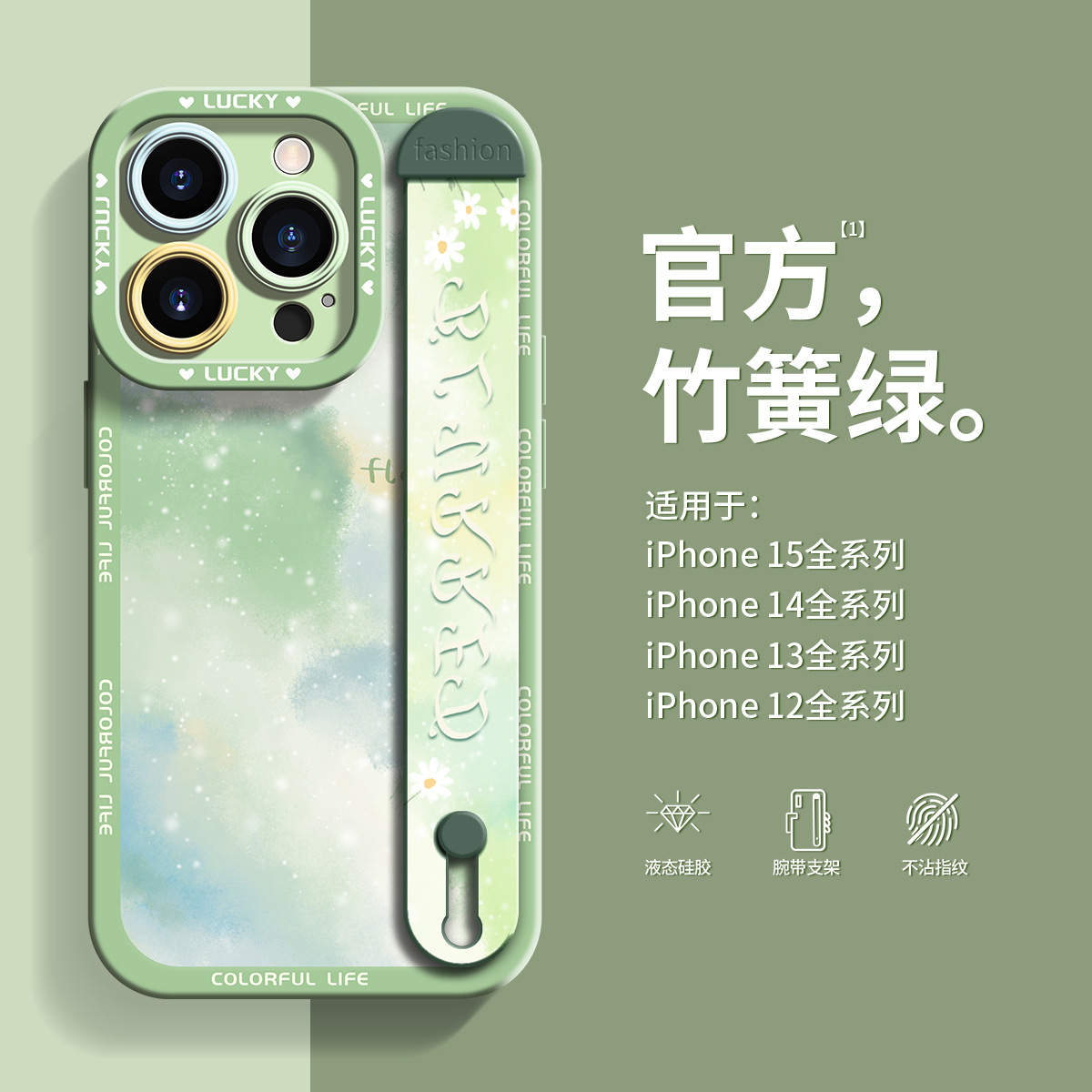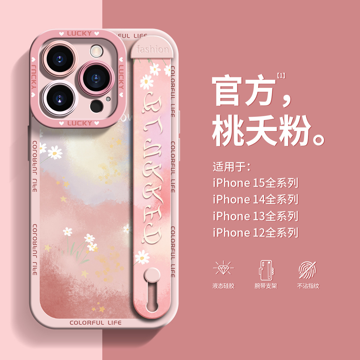 适用于苹果15Promax手机壳进口硅胶腕带支架亲肤全包创意iPhone14