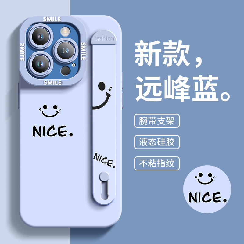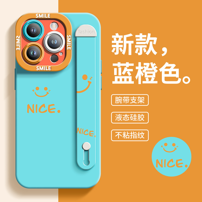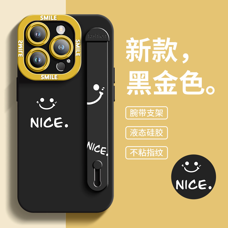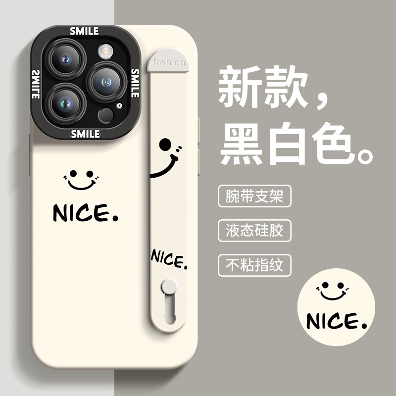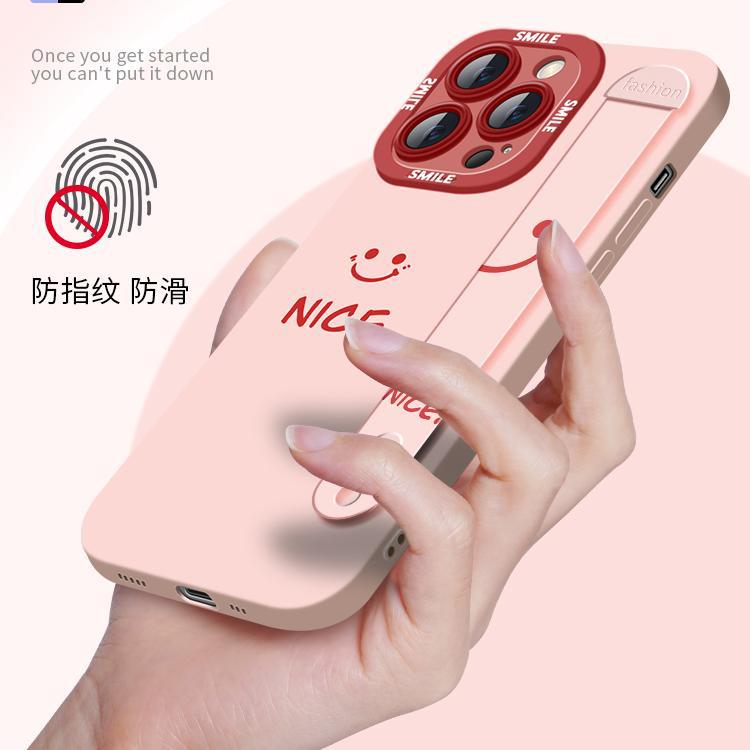 适用于苹果13手机壳高级感笑脸全包iphone14硅胶商务支架14pro