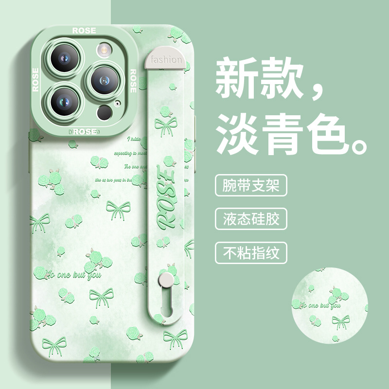 适用于苹果15promax手机壳花雾清新全包硅胶腕带14爆款保护壳13