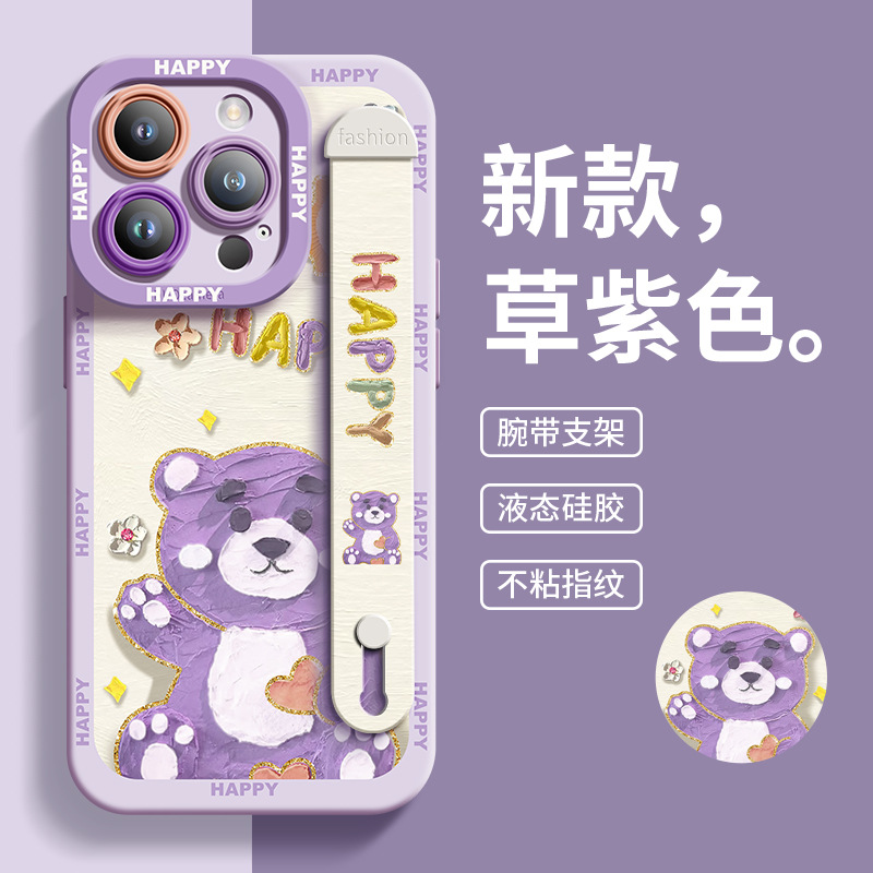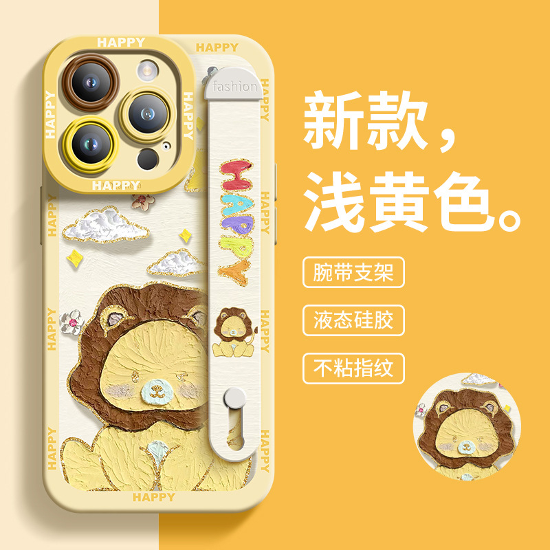 适用于苹果13手机壳快乐萌宠高级感全包iphone14硅胶新款支架14pr