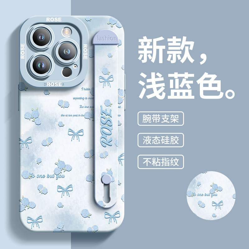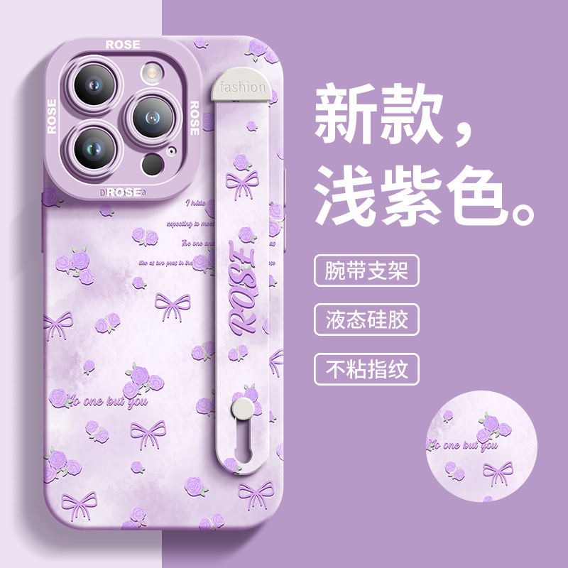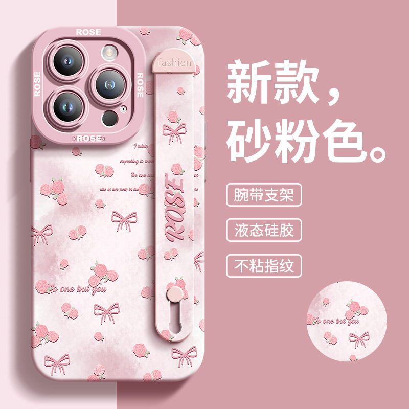 适用于苹果15promax手机壳花雾新中式全包硅胶腕带14趣味保护壳13
